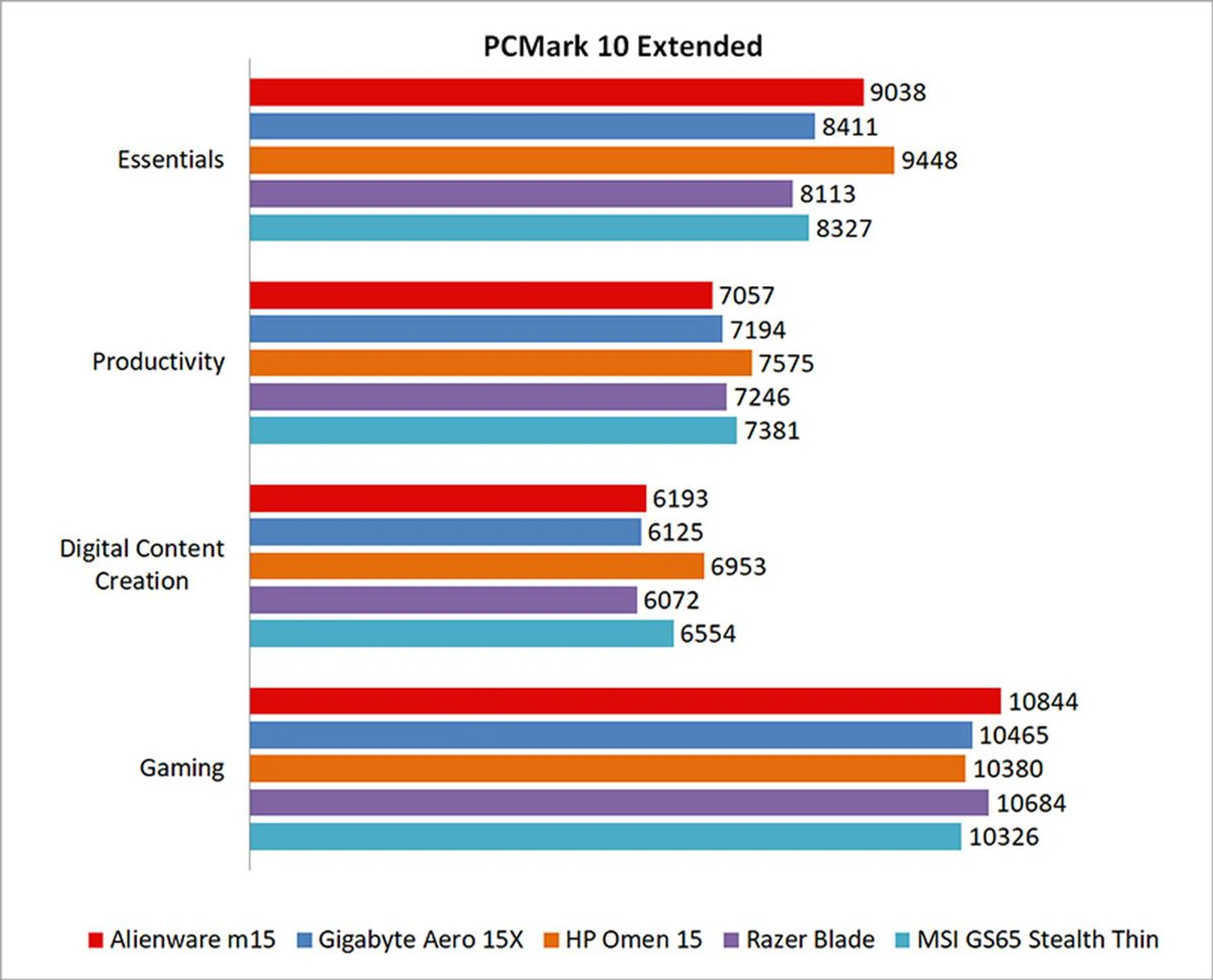 Thanks to their near identical specifications, all the laptops turned out really similar performance numbers. The Alienware m15 did pretty well though, beating all the laptops except the HP Omen 15.