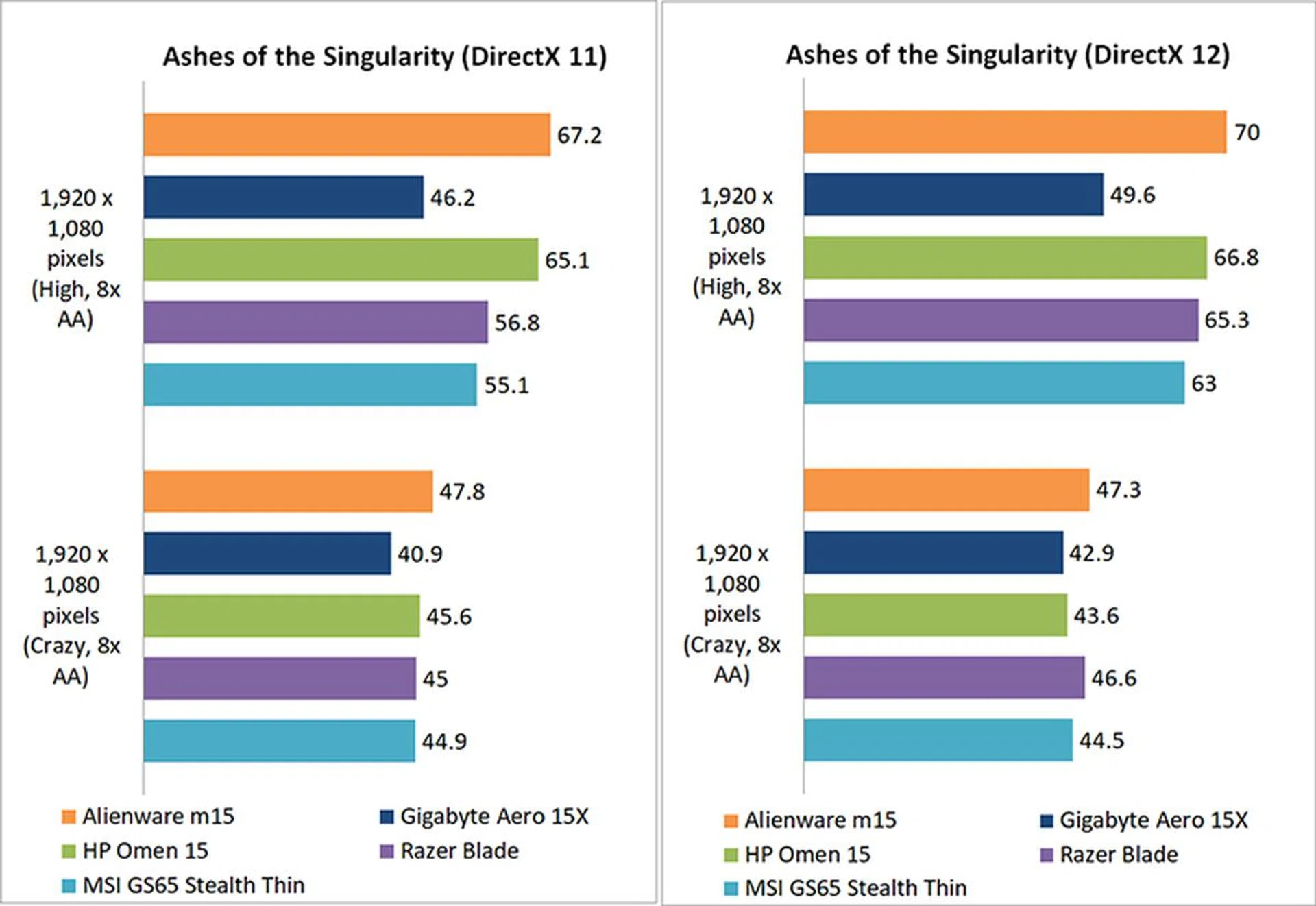 There were hardly any significant differences here, and all the laptops performed within a few frames of each other.