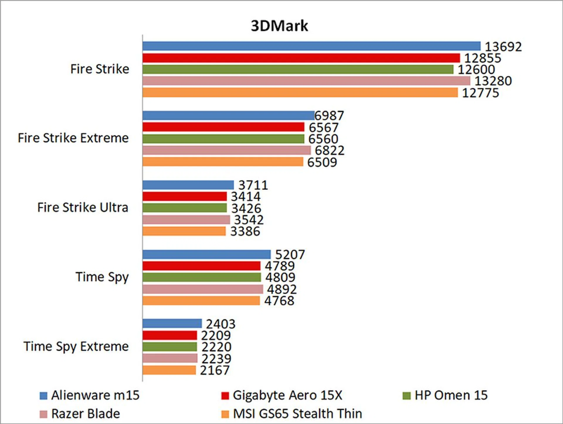 The Alienware m15 was the best performing laptop here, although it was a mere 3 per cent quicker than the Razer Blade in the Fire Strike benchmark.