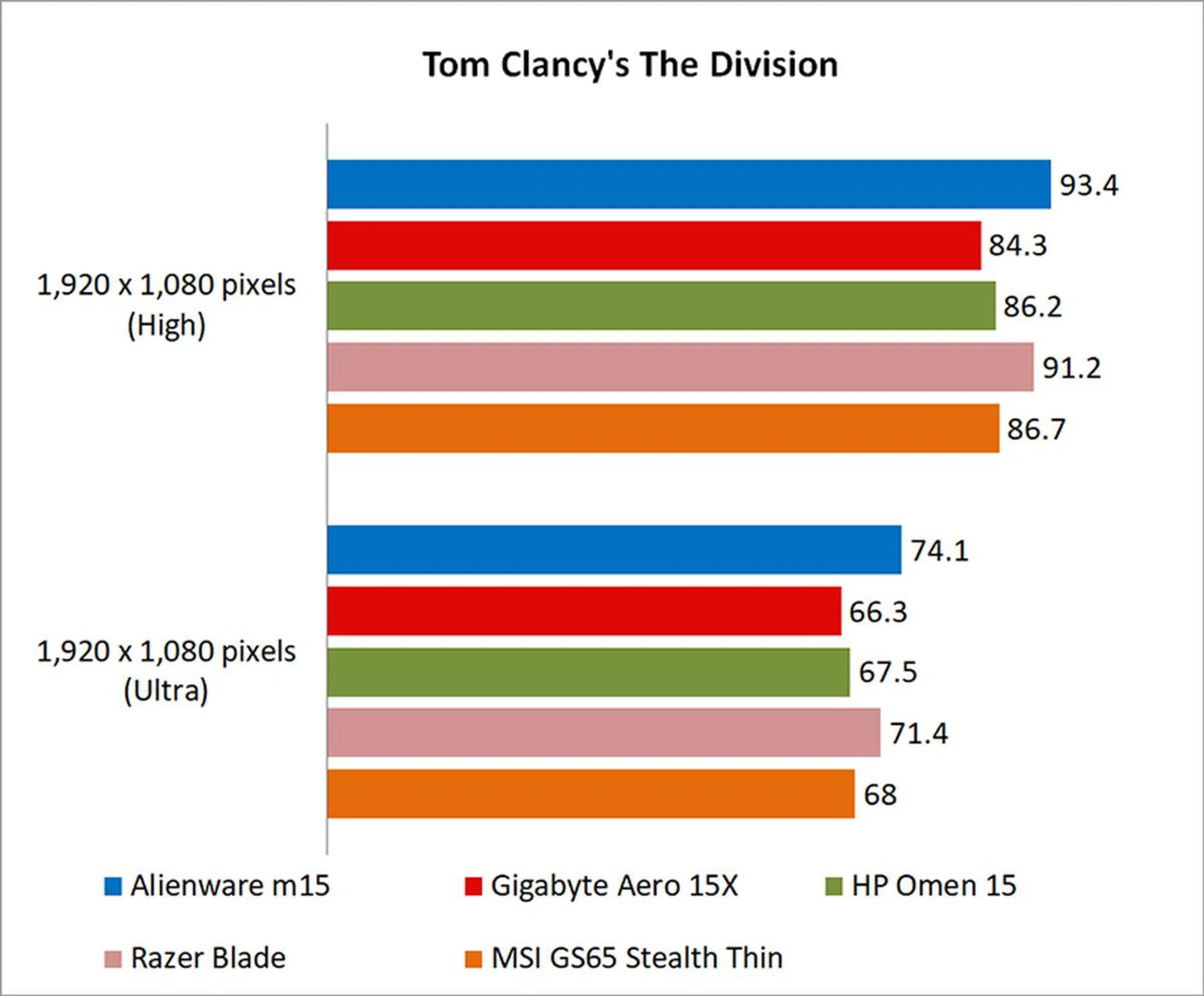 The Alienware m15 came ahead in The Division, where it was around 8 per cent quicker than the HP Omen 15.