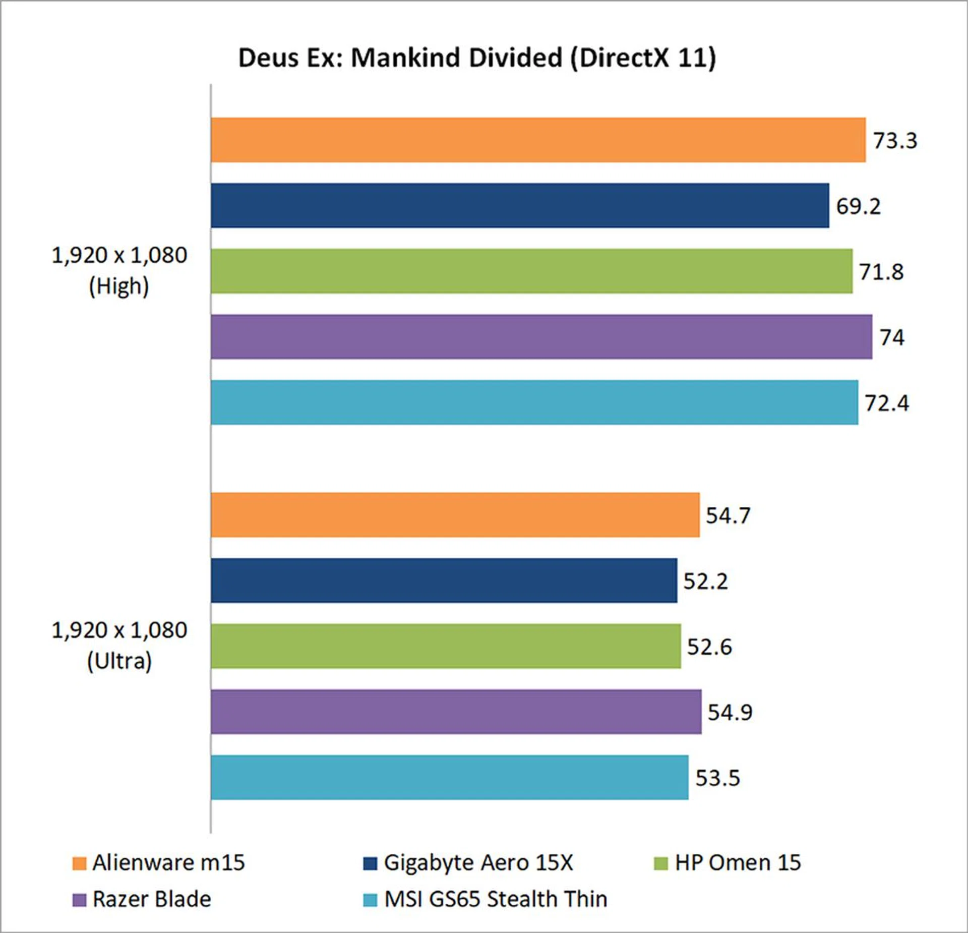 Mankind Divided is one of the most demanding titles to run today, but theAlienware m15 is more than capable of delivering a playable experience.