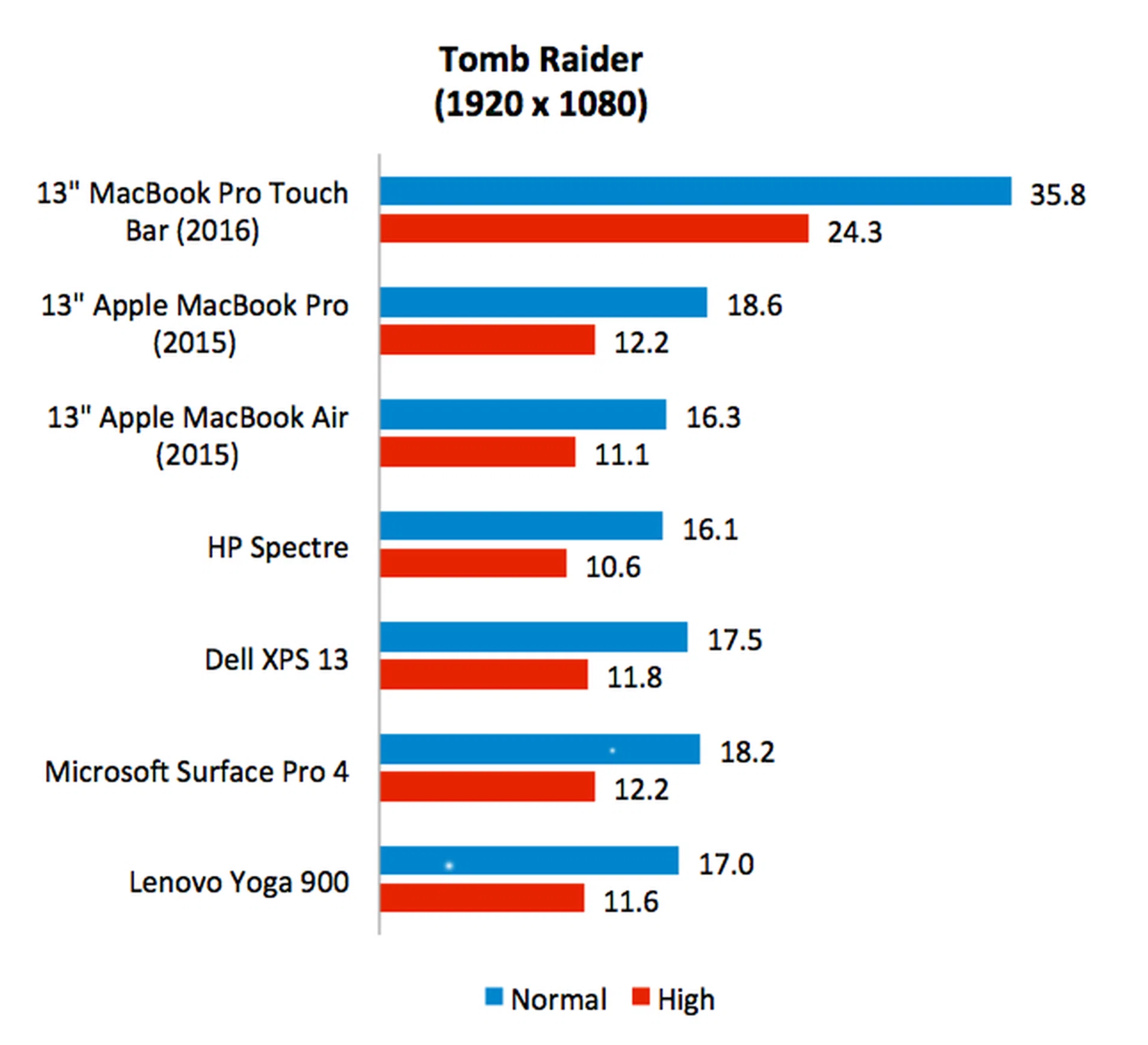 To put the new MacBook Pro’s graphics capabilities to further test, I ran the game Tomb Raider. It might be an old game, but it’s still challenging enough for most integrated GPUs. Astonishingly, the new MacBook Pro was the first notebook with integrated graphics to record above 30fps - the threshold of playability. On Normal settings and at Full-HD resolution, it achieved an average frame rate of 35.8 fps, which is pretty impressive. That’s nearly double that of last year’s MacBook Pro. On High graphics settings, it achieved a respectable 24.3 fps. Though this was under the playable threshold of 30fps, it was again nearly double that of last year’s model. All in all, it is safe to say that the new MacBook Pro has very much improved graphics performance.