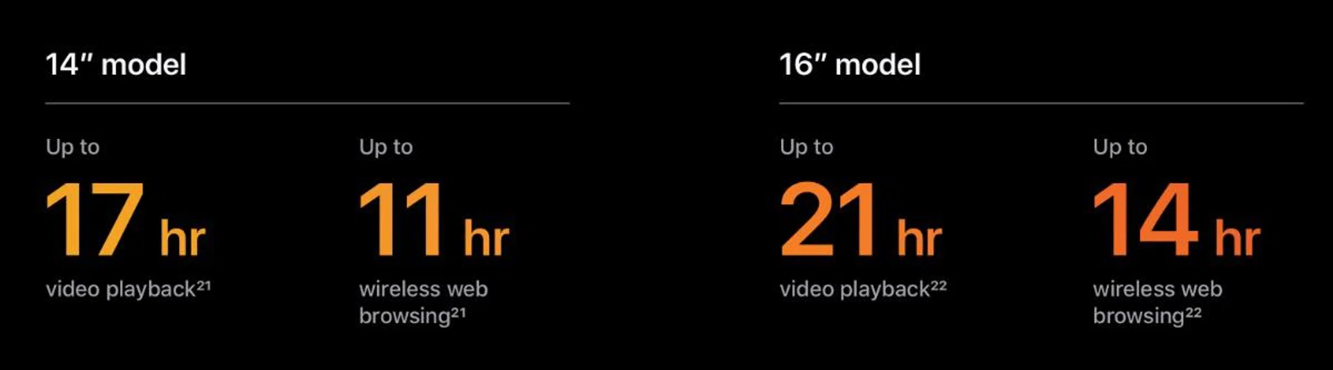 The secret sauce, as Apple has said in the past, is the unified memory architecture, and it enables these new chips to match or even exceed the performance of comparable PC notebooks while consuming significantly less power. This also explains why Apple can fit the M1 Max in a 14-inch body. Apple says that for almost all workloads, the 14-inch and 16-inch MacBook Pros will perform similarly and that it is only in the most extreme cases that the 16-inch MacBook Pro will have an edge. After all, bigger means better cooling.