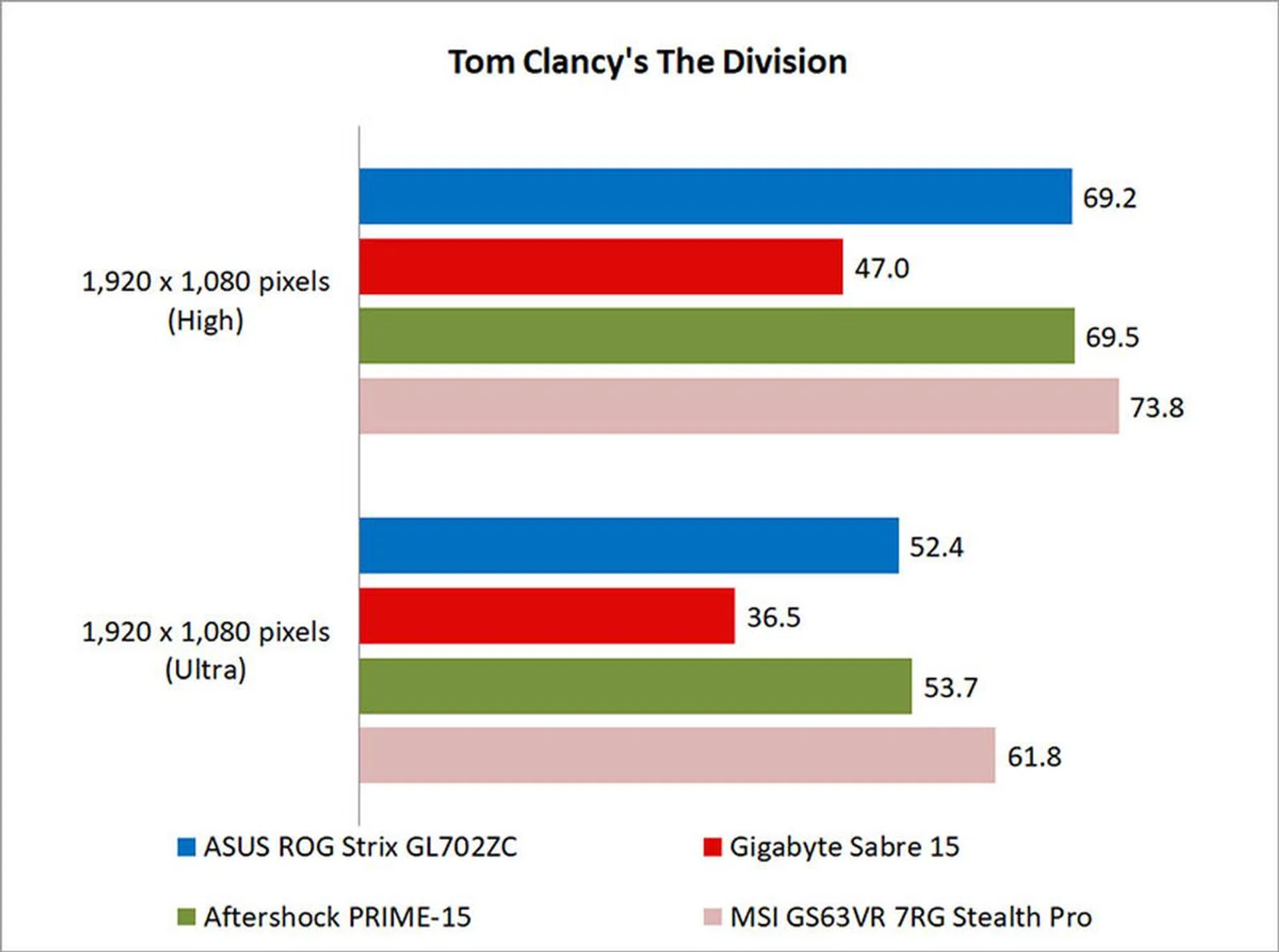 That said, the ASUS ROG Strix GL702ZC still lagged behind, and the Aftershock PRIME-15 was still 39 per cent faster.