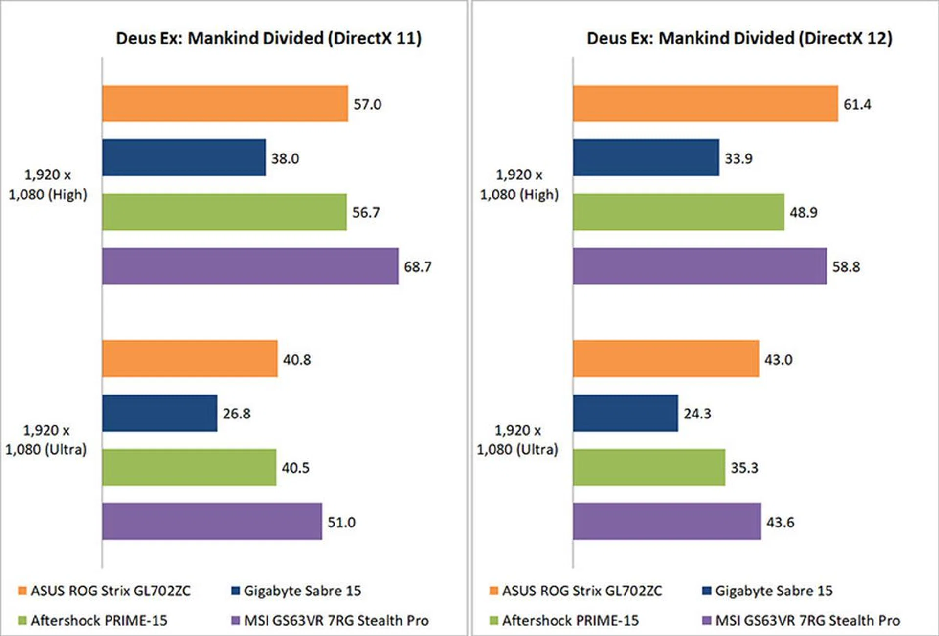 Note: The Gigabyte Sabre 15 won’t run the game in DirectX 12 mode, which is why there aren’t any figures for it in the relevant graph.