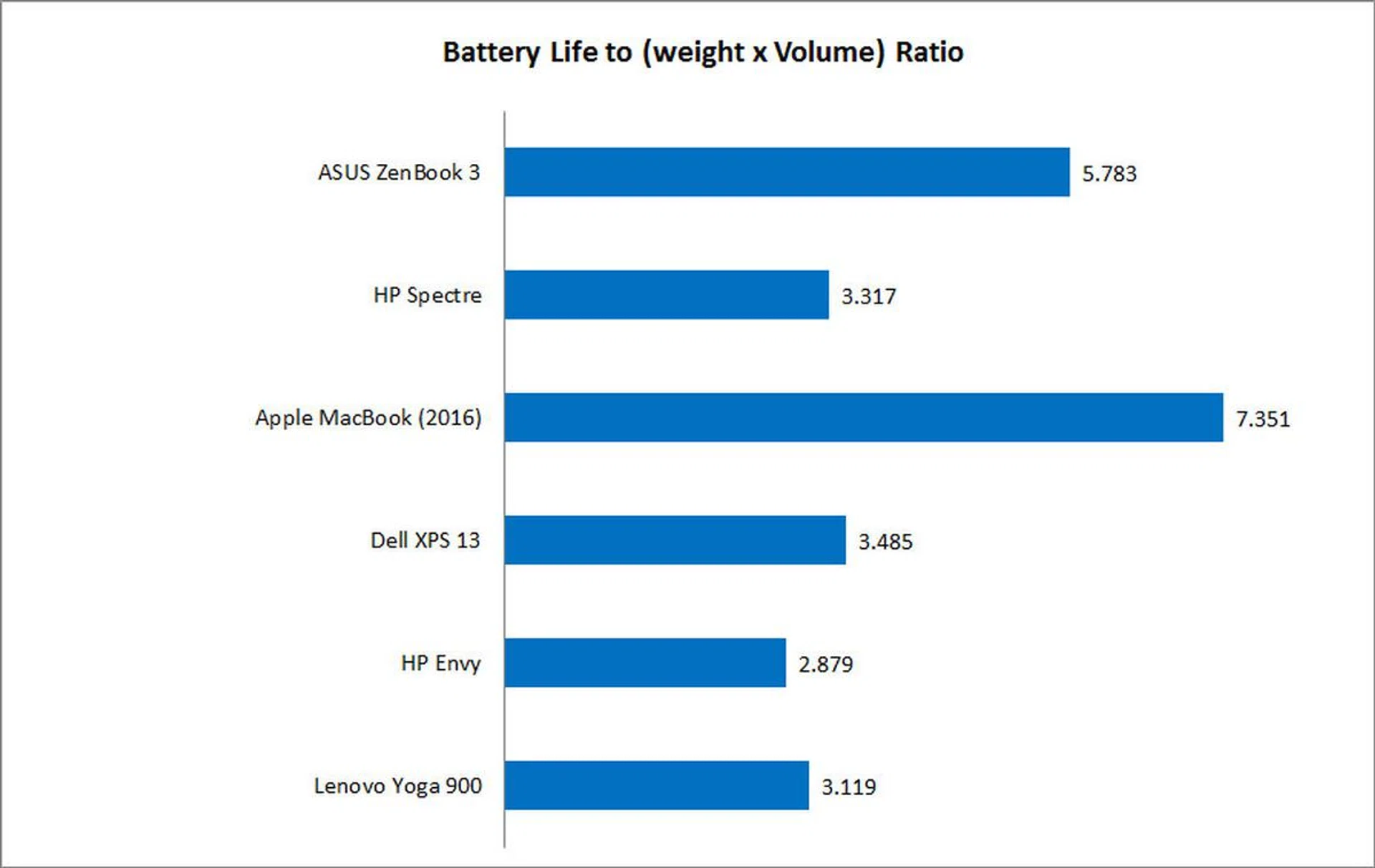 Our portability index takes into account battery life, weight, and volume to provide a measure of how easy a notebook is to carry around relative to other compared systems.
