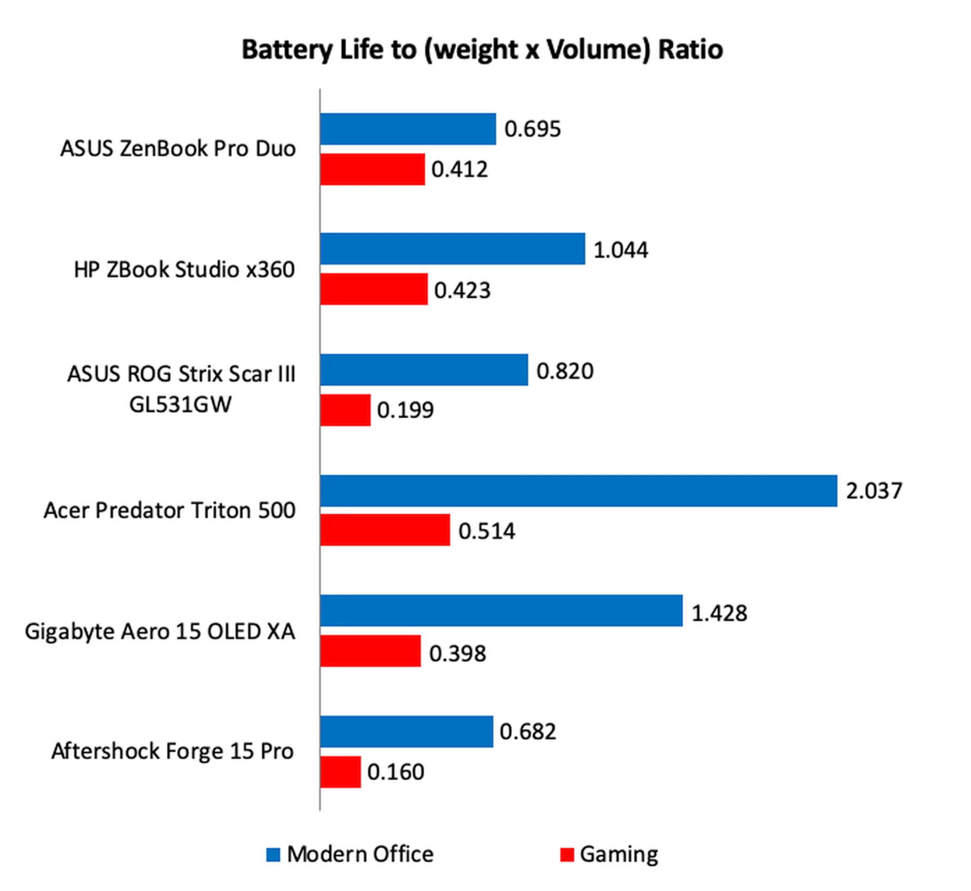 Not exactly. As I mentioned, the ZenBook Pro Duo is more transportable than portable. It's bulkiness, weight, and slightly below average battery life meant that its Portability Score was unimpressive, especially on the Modern Office benchmark. However, it scores highly on the Gaming benchmark mostly because the rest of the notebooks did poorly in this benchmark.