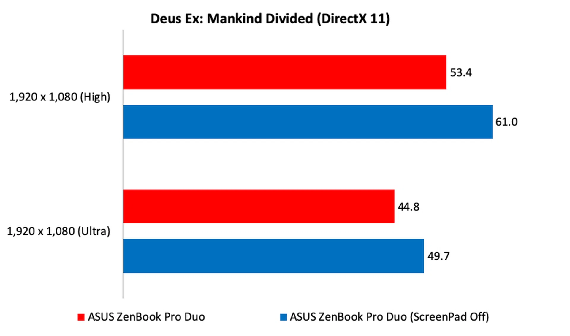 It some cases it does. On 3DMark, the scores remained the same even with the ScreenPad Plus turned off. But in games, we noticed improvements. On Deus Ex, turning the ScreenPad Plus got us at least a 10% boost in frame rates. On Far Cry 5, we got a 20% increase performance on the High preset, but nothing in Ultra.
