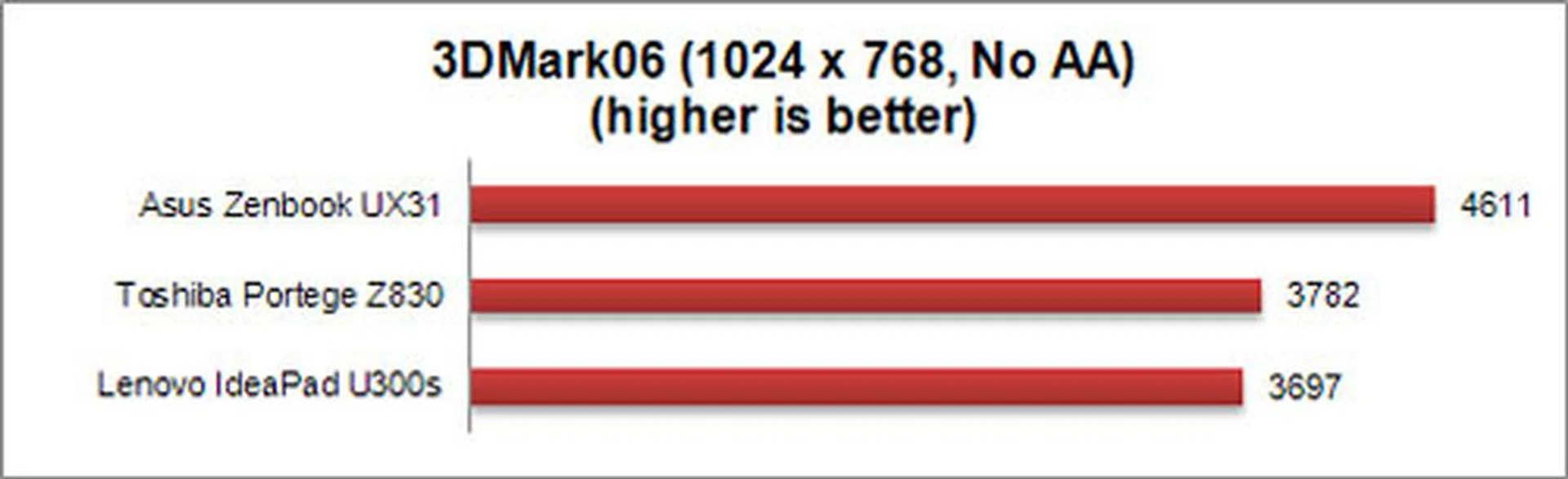 The machines’ 3DMark06 scores here indicate the gaming performance of each Ultrabook. The ASUS Zenbook managed to score a tad bit higher than the other two machines, despite all three using the same Intel HD 3000 integrated graphics. This is possibly due to the better SSD, which allows for faster loading of textures and other data. While the ASUS Zenbook’s performance here seems average, we still wouldn’t recommend anything more than just casual gaming. Apart from games, such as rendering of movies, or some light editing shouldn’t be a problem for its integrated graphics to handle.