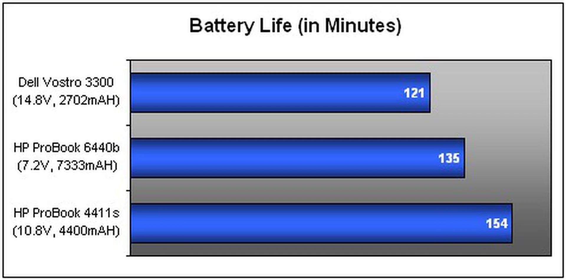 As establsihed earlier, we'll draw a direct comparison between the Dell Vostro 3300 and HP's ProBook 8440b. Both machines fall under the ultraportable category, and best of all, they are also powered by the new fangled Core i5 processor. However, keep in mind the ProBook has a marginally larger screen (14-inch), and is running off an integrated GPU. Let's look at their power specifications. Dell is relying on a 2702mAH 4-cell battery with a rating of 40Wh. On the flip side, it only has a 13.3-inch to drive. However, it would appear the ProBook still has the advantage with a higher battery rating of 55Wh. To gauge its endurance, battery mileage is determined by looping a DVD video with brightness and volume fixed at 50% with WiFi disabled. This should give us an indication on the notebook's portability for mainstream handling.