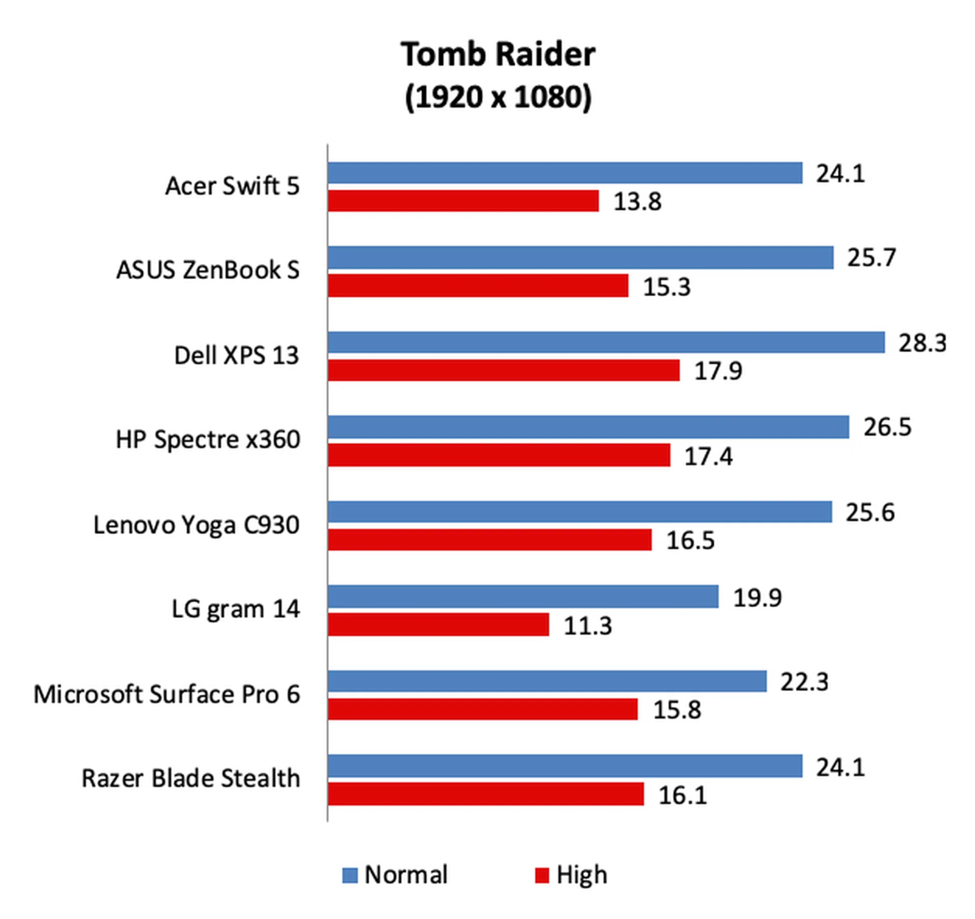The unit that we tested is the rose gold model with a Core i7-8565U processor with 16GB of RAM and 512GB SSD. Like its predecessor, the XPS 13 is a strong performer and was consistently amongst the top performers in our tests. Its graphics performance was particularly impressive. It won’t beat notebooks with discrete graphics chips but it managed to eke out the more performance from Intel’s integrated GPU than its rivals and that’s something. For those of you interested in the specifics, take your time to study the charts below.