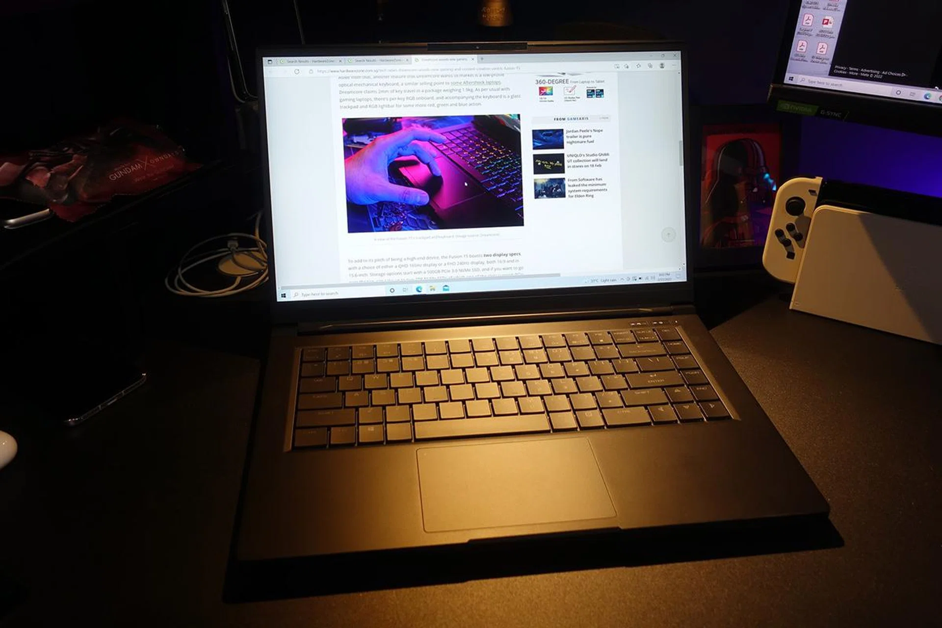 The Dreamcore Fusion 15 is at its heart a 15.6-inch performance notebook, powered by Intel’s 11th Gen Core i7-11800H (which is an 8-core part designed for heavy workloads), and the design makes no pretence about it with its rather minimal magnesium-alloy body. It’s a personal taste, but I do like my gaming notebooks in slim (relative to gaming notebooks, of course) and clean designs – even a minimalist look can look modern – and the Fusion 15 even with its RGB keyboard would not look out of place in a design lab or a gaming room.