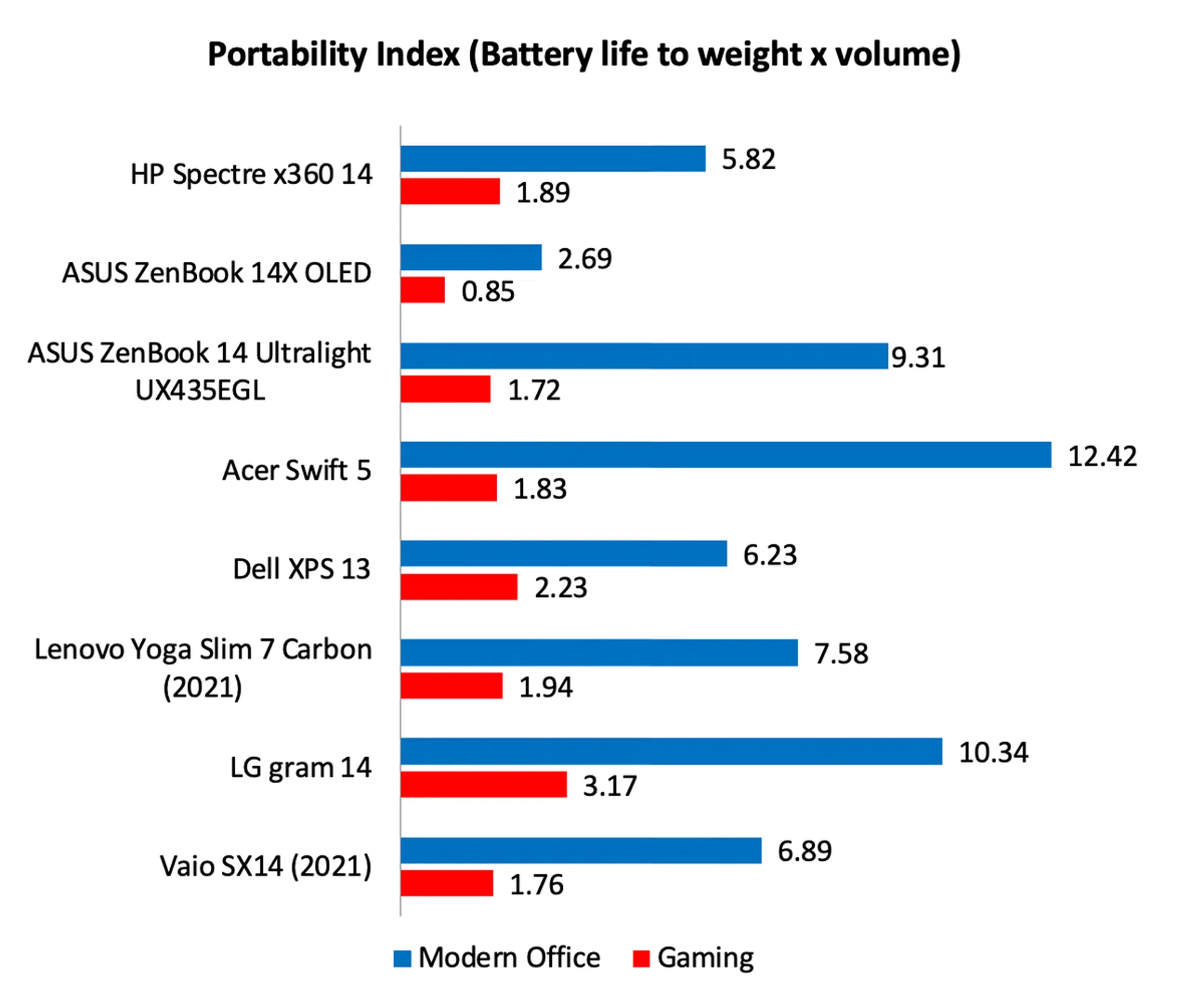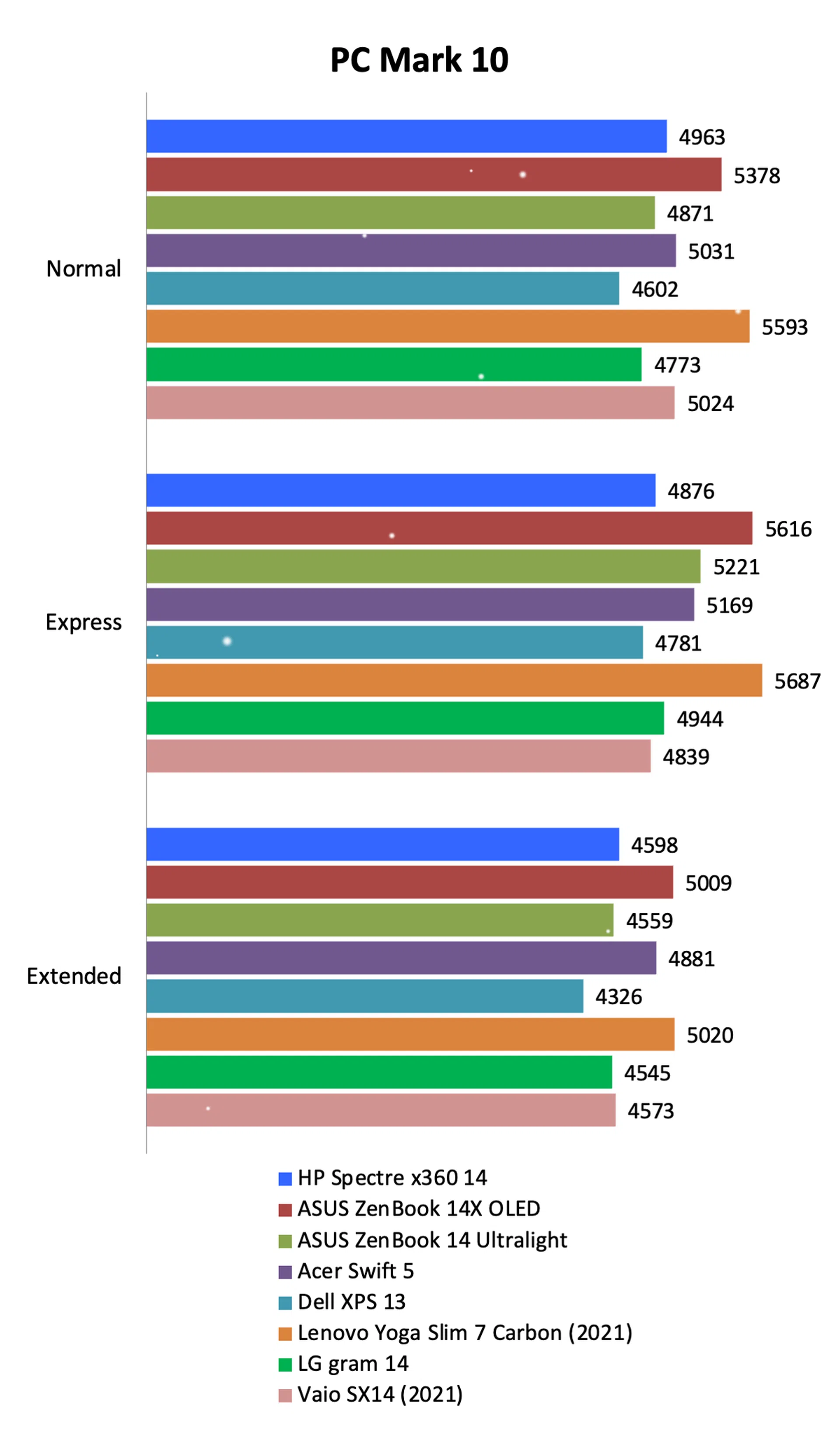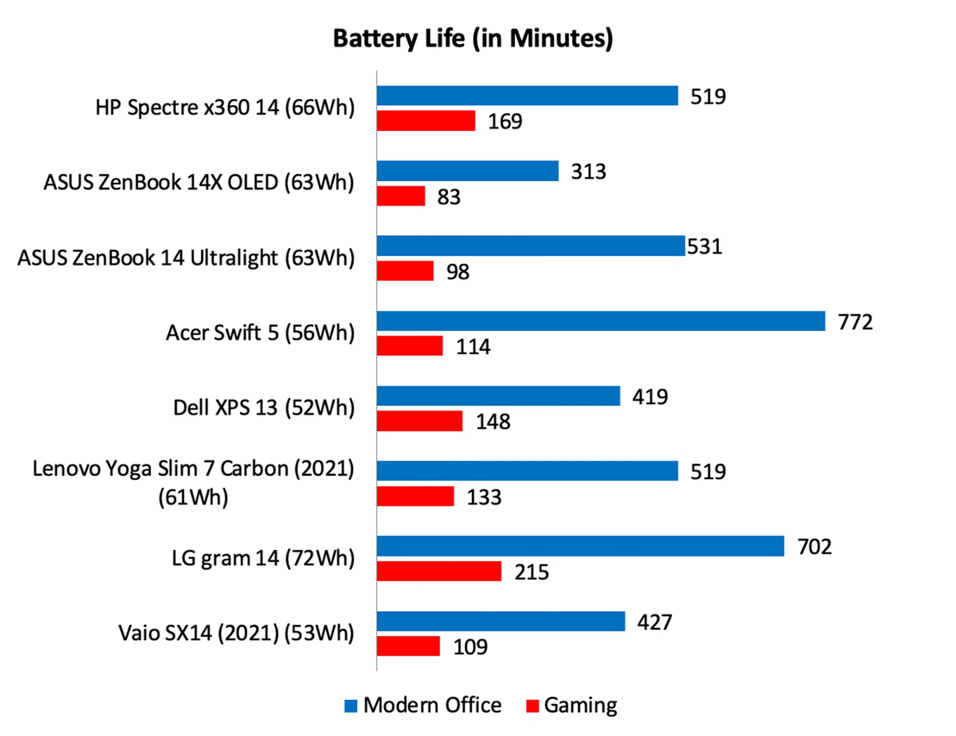 Note: Battery tests were conducted using PCMark 10's battery benchmark with display set to 100% brightness.