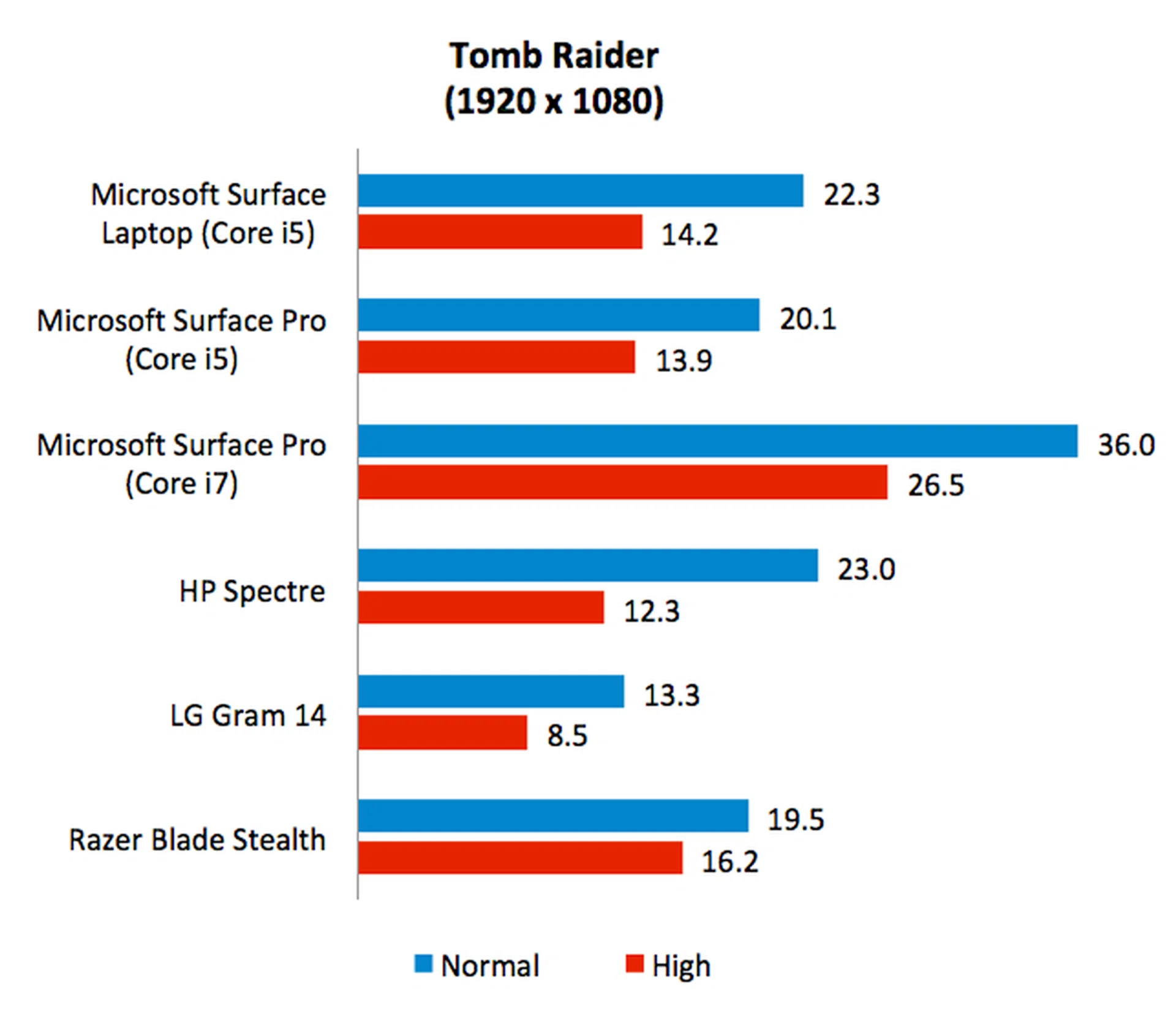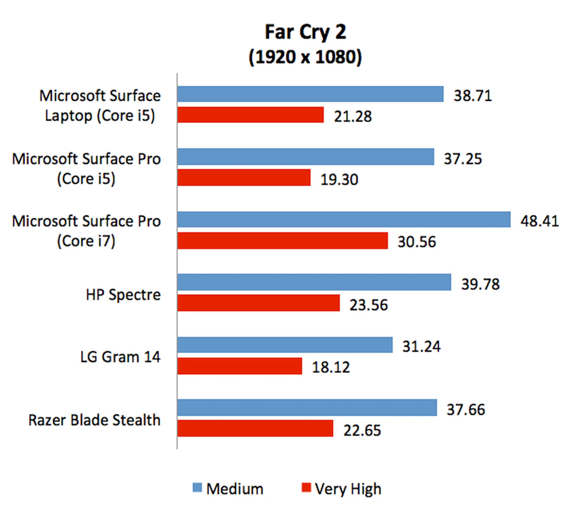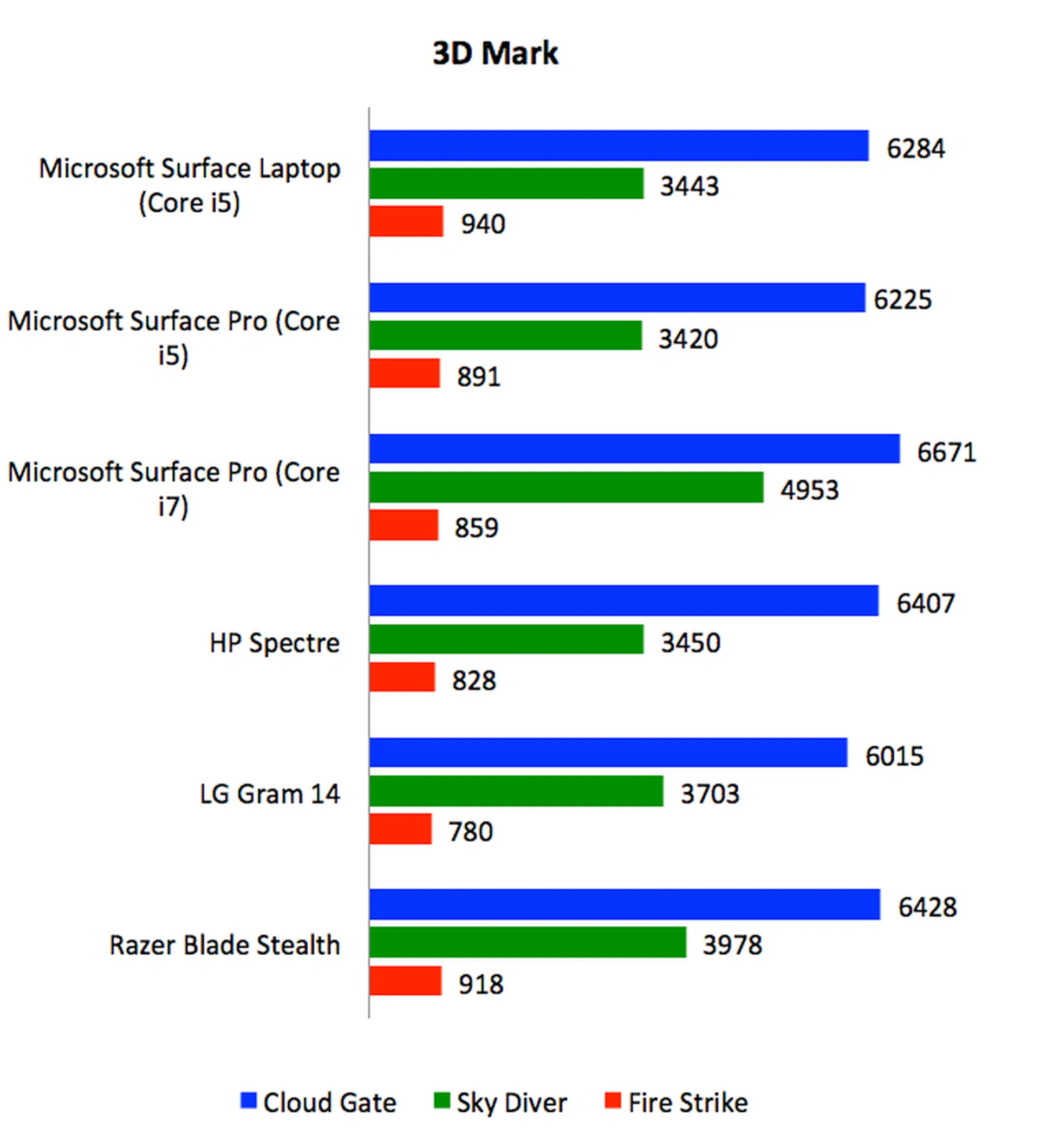 One positive thing to note is that unlike the Core i5 version of the Surface Pro, the Surface Laptop does not suffer from severe performance throttling issues. This is likely because the Surface Laptop has active cooling whereas the Core i5 version of the Surface Pro is fanless and has to rely solely on passive cooling heatsinks.
