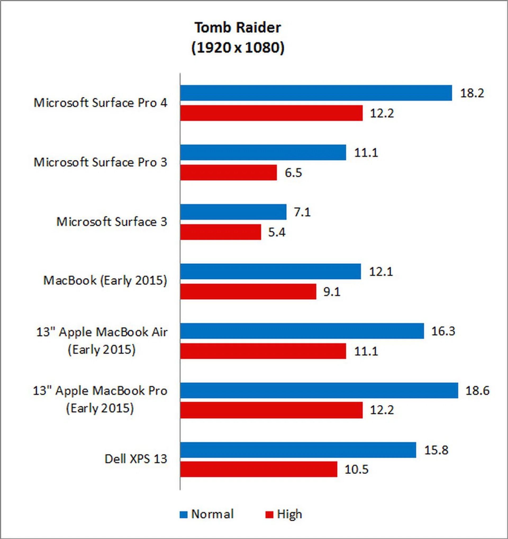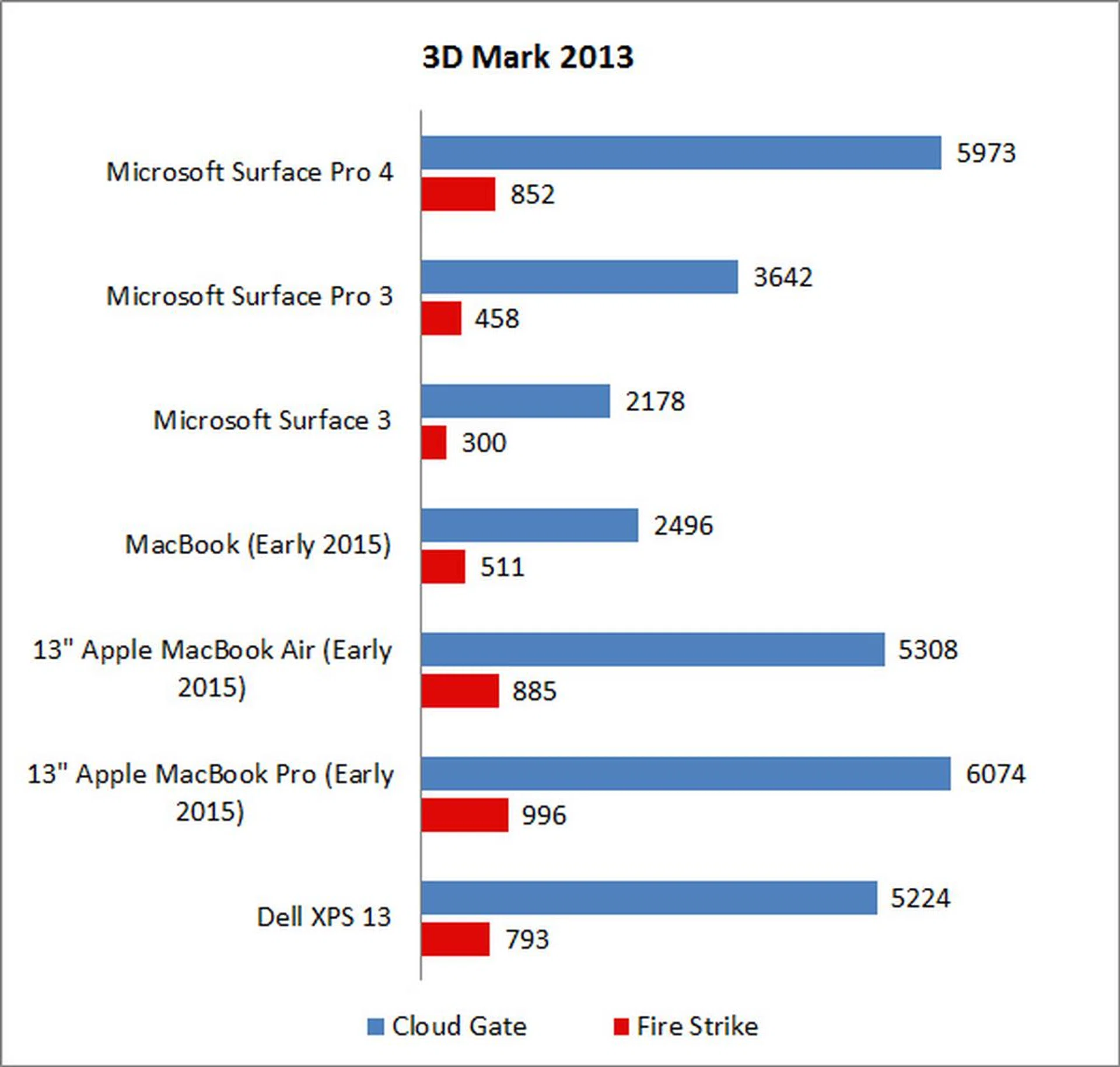 As in 3DMark, the Surface Pro 4 also managed to outstrip the other ultrabooks, losing only to the 13-inch MacBook Pro.