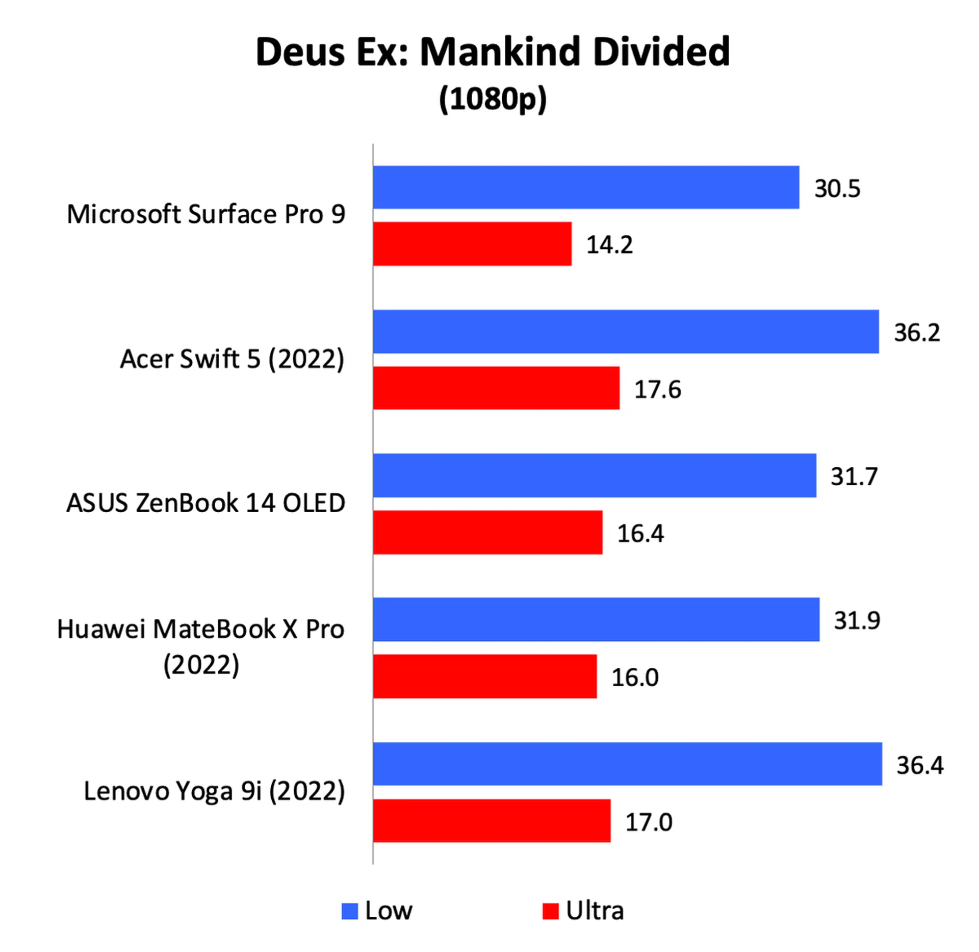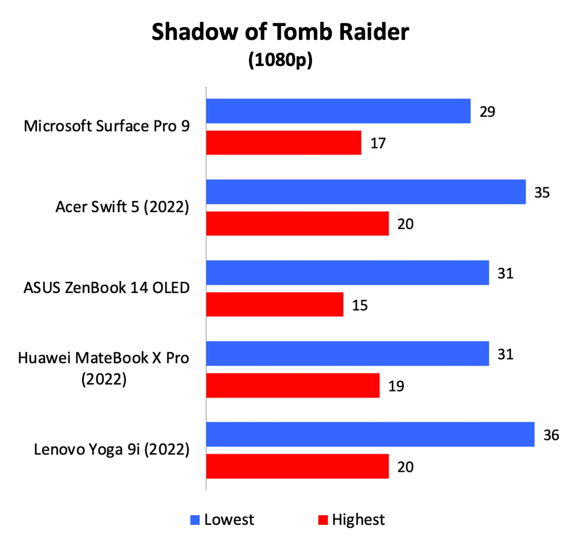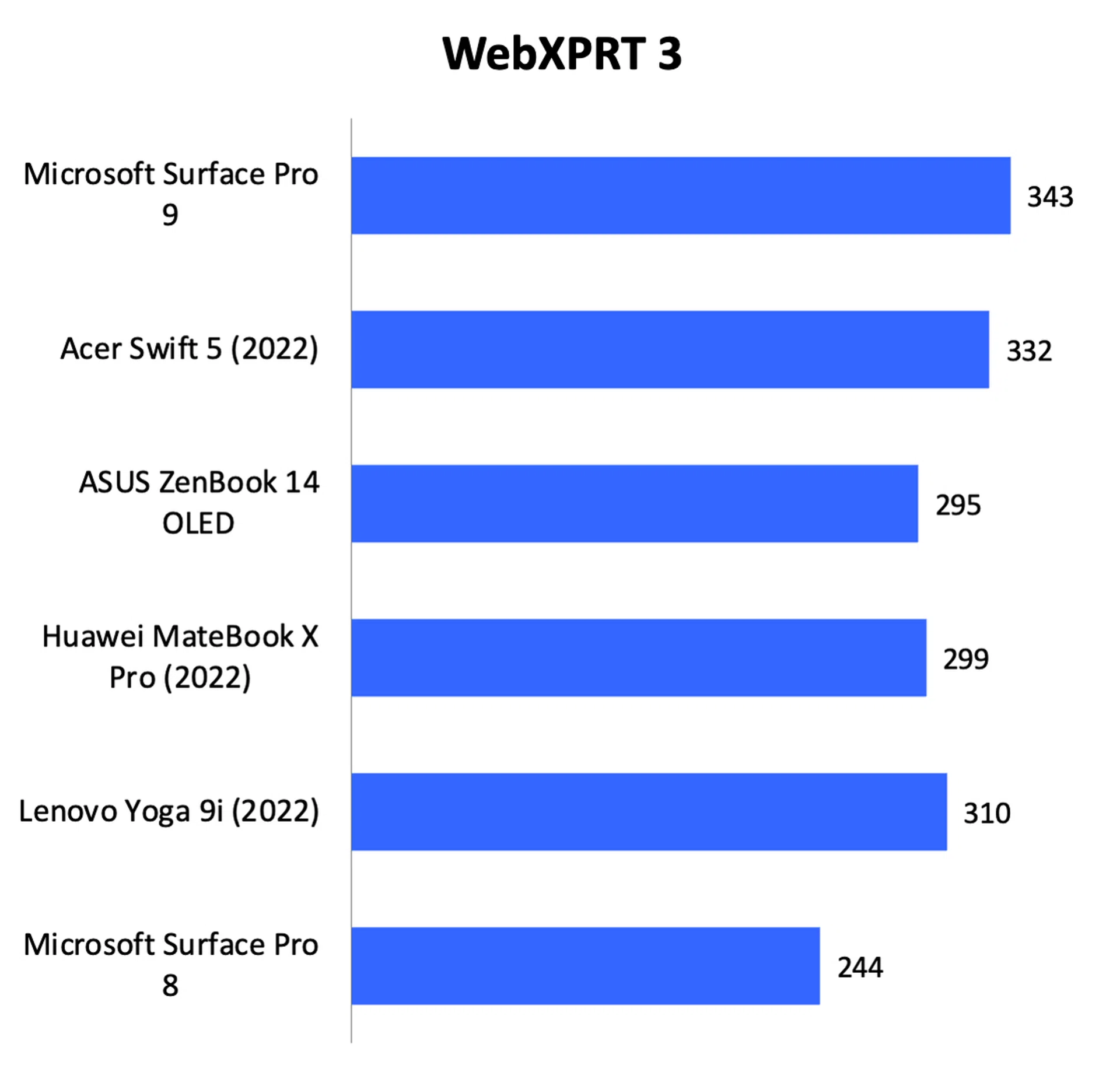 Crucially, in the real world, the Surface Pro 9 feels every bit as fast and responsive as the other ultraportables. You can’t tell that it has a lower-power U-series processor, and that must be viewed as a positive. Also, CPU performance is much improved over its predecessor. The only negative I found is that it can get quite warm when it’s taxed, but thankfully the fans aren’t obnoxiously loud.