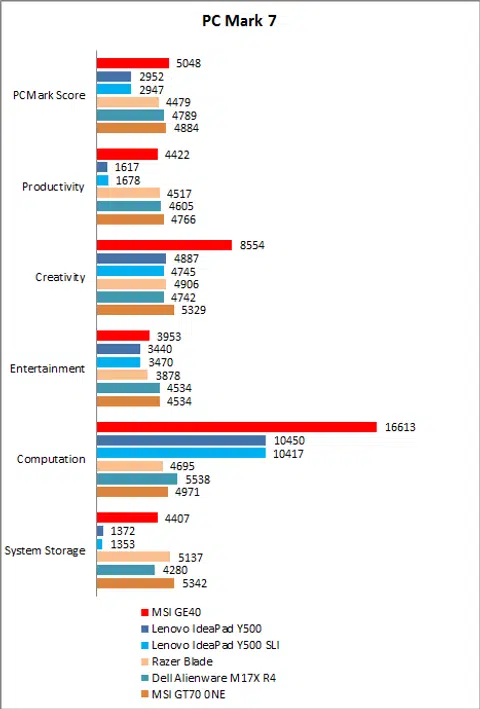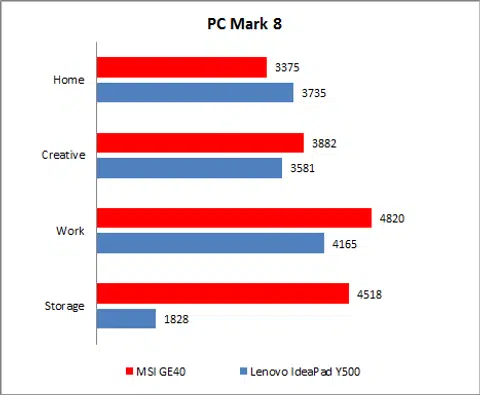 Since PCMark 8 is still new and we could not recall the rest of the notebooks for re-evaluation, we will only be looking at the results of both the MSI GE40 and Lenovo Y500. However, rest assured we will be populating this list moving forwards in future reviews.