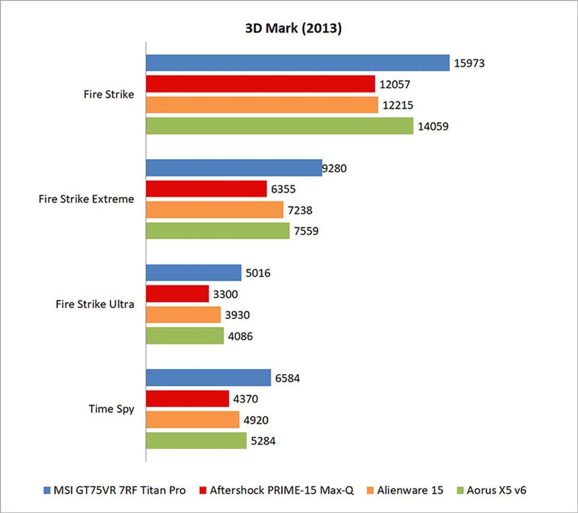 Still, MSI’s Titan Pro was just over 13 per cent quicker than the Aorus in 3DMark Fire Strike, and it bounded to a roughly 30 per cent lead over the Aftershock and Alienware laptops.