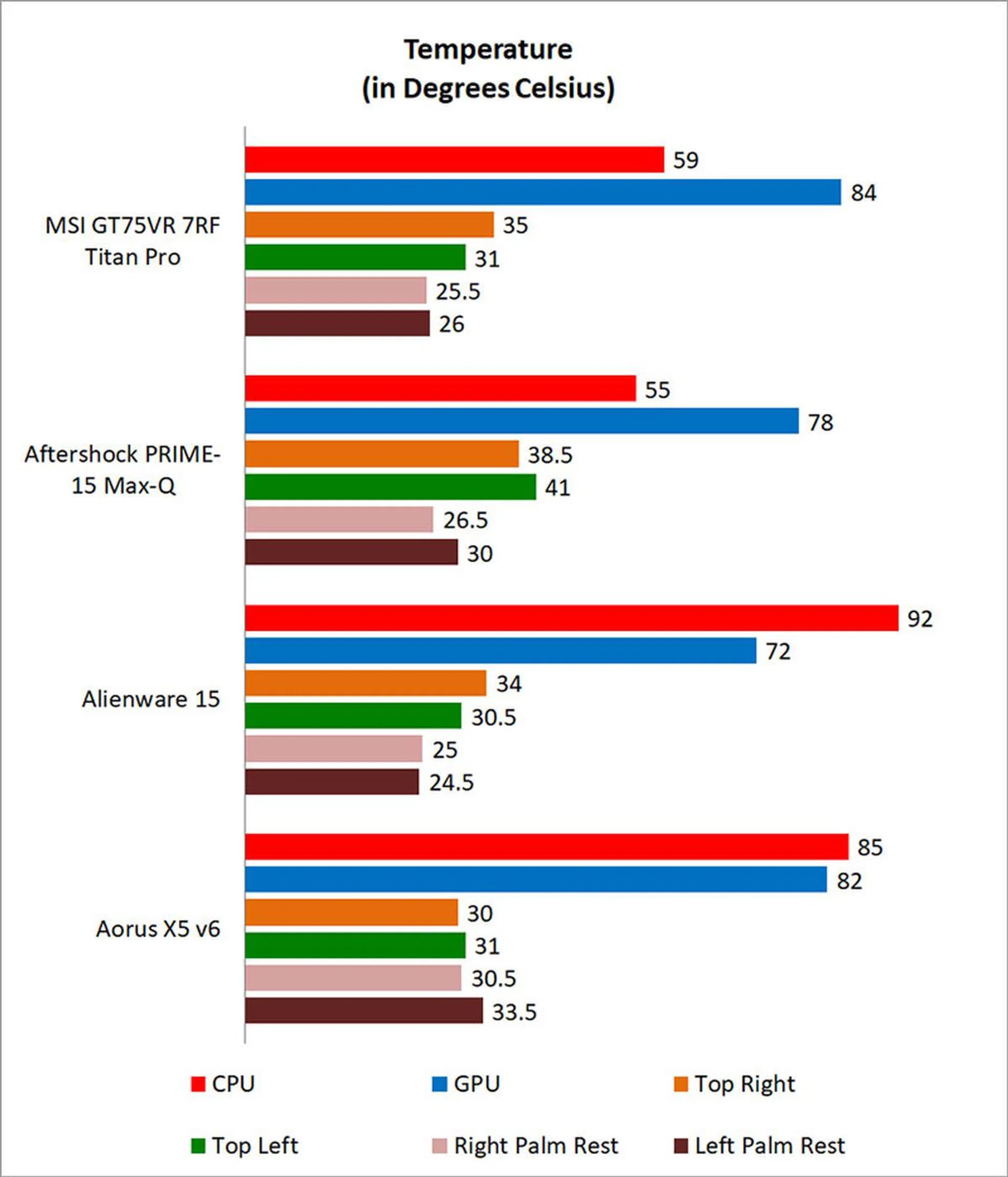 All the systems here passed with flying colors, although the MSI GT75VR 7RF Titan Pro was naturally ahead of the pack. However, its lead was more modest, with approximately a 6 per cent lead over the Aorus X5 v6.