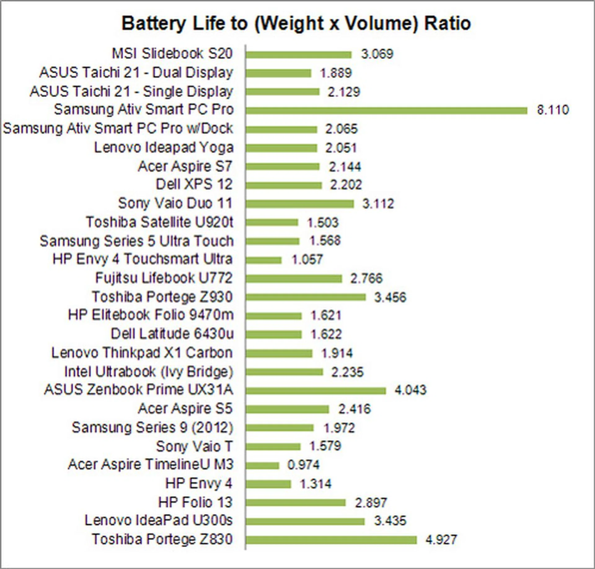 Our portability index is an in-house formula that tries to quantify how portable a machine really is based on its battery life, mass and volume to tell us if it's worthwhile your time to carry it about.