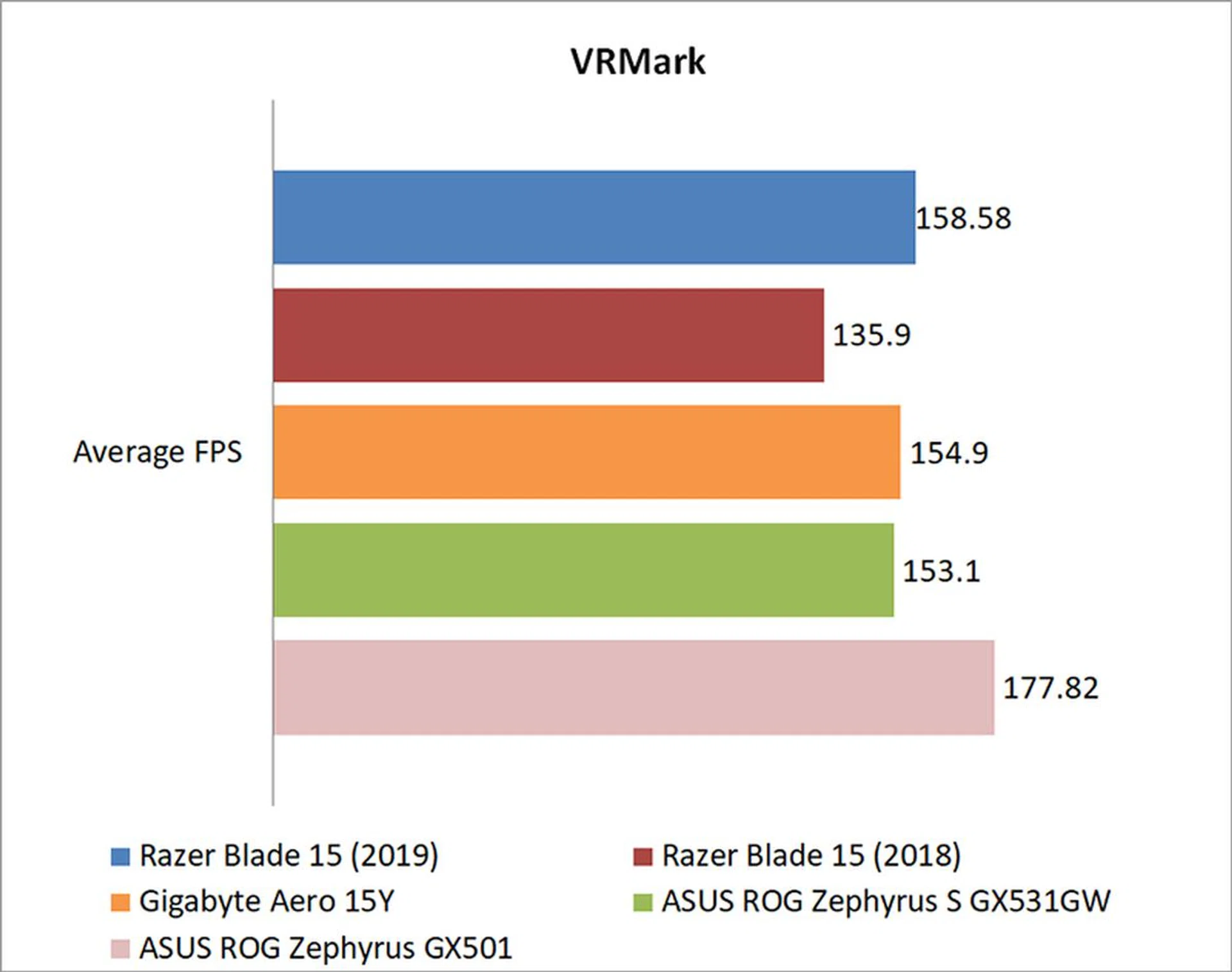 However, it lost out to the ROG Zephyrus GX501 in VRMark, a benchmark which doesn't seem able to take advantage of the shift toward processors that feature more cores at lower clock speeds. The quad-core Core i7-7700HQ in the Zephyrus has a higher 2.80GHz base clock, versus 2.20GHz on the Core i7-8750H, which probably helped improve its performance.