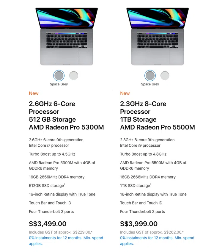 Prices of the 16-inch MacBook Pro will start at S$3,499 and it's available for order today and will be coming to stores soon.