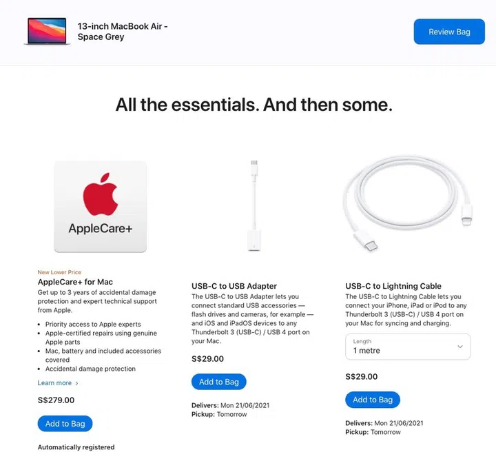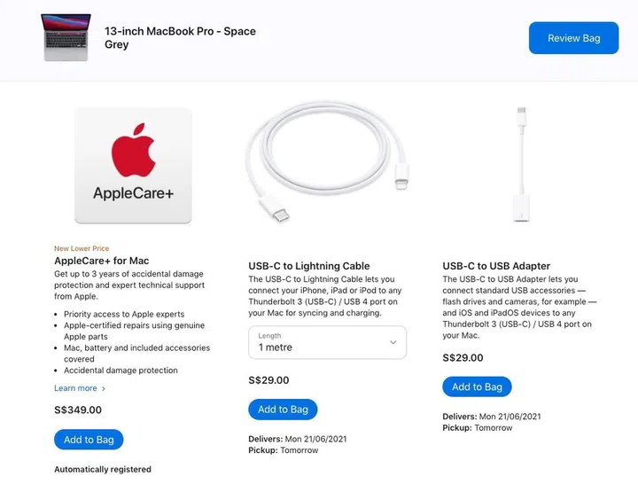 For the M1-powered MacBook Air, consumers can purchase the AppleCare+ plan for S$279. Previously, it was priced at S$348 and this translates to savings of S$69.