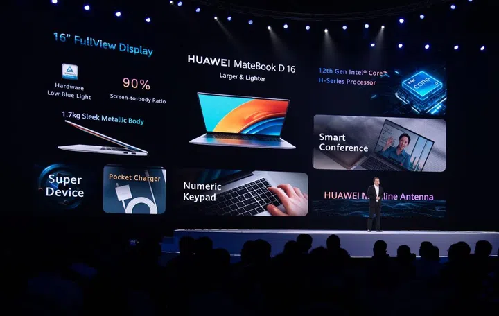 The MateBook D 16 has a 16-inch display with a 16:10 aspect ratio, a resolution of 1,920 x 1,200, all in a lightweight chassis at 18.4mm thick and weighing just 1.7kg. It comes powered by up to a 12th Gen Intel Core i7-12700H processor.