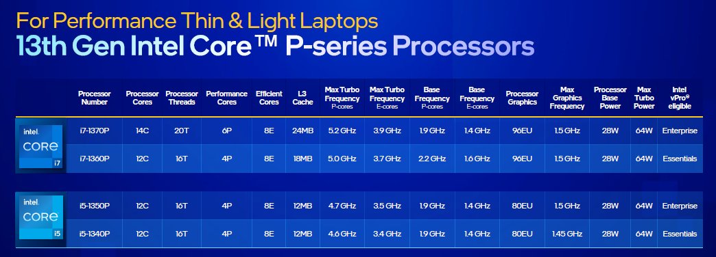 13th Gen P series configurations. Click to view a larger image. (Image source: Intel)