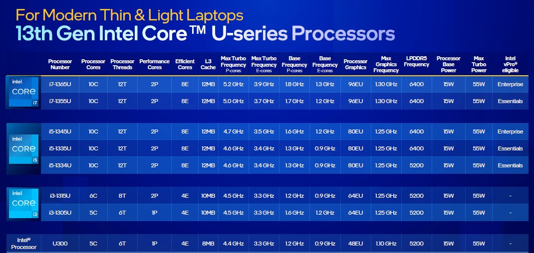 13th Gen U series configurations. Click to view a larger image. (Image source: Intel)