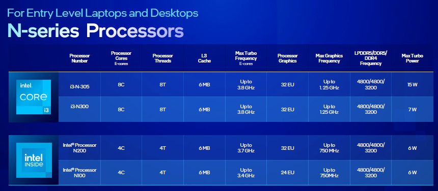 13th Gen N series processor configurations. Click to view a larger image. (Image source: Intel)