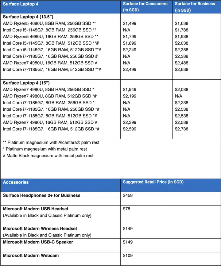 Check out the full list of configurations and prices of the new Surface Laptop 4 below!