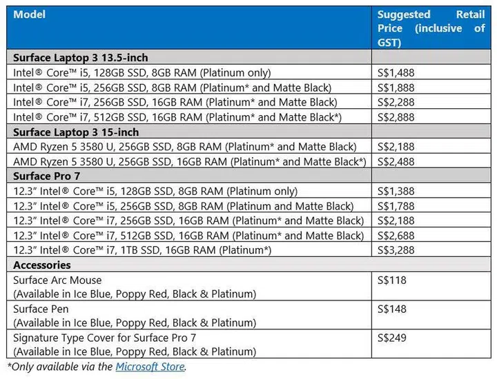 See below for the all configurations and prices of the new Surface Pro 7 and Surface Laptop 3.