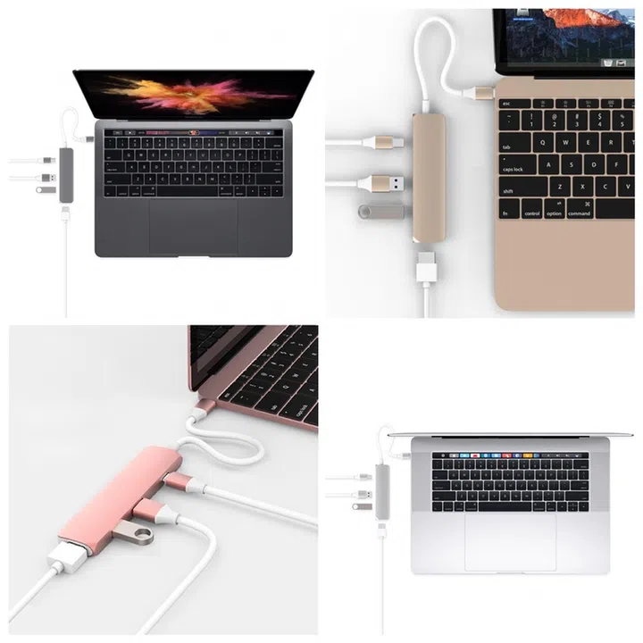 The HyperDrive USB Type-C Hub can be inserted into the Thunderbolt 3 slots on the new 2016 MacBook Pro, giving the notebook a HDMI port, two USB 3.0 ports, and another USB Type-C port in return
