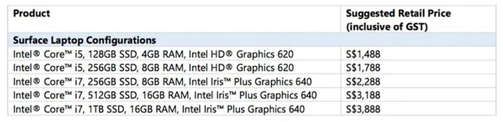 The Surface Laptop will start at S$1,488, and that’s for the Intel Core i5 (Kaby Lake) version, with 128GB SSD, 4GB RAM, and Intel HD Graphics 620. The top-end variant with Core i7, 1TB SSD, 16GB RAM, and Intel Iris Plus Graphics 640 will set you back S$3,888.