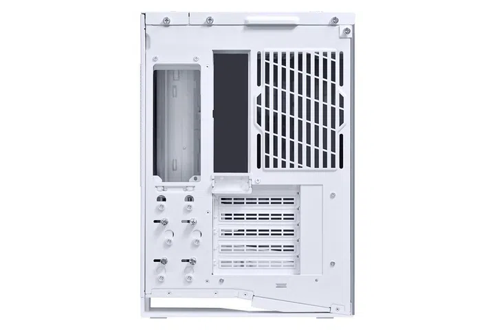 The back of the O11D Mini V2. The plastic piece sitting above the slots in this image can be moved if you’re installing the motherboard in a lower position. Image: Lian Li.