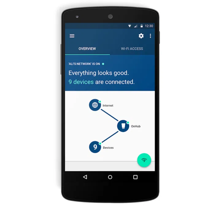 OnHub is configured, not through a web-interface that looks like it was designed in the 90s, but through an iOS and Android app called Google On. The app can help you troubleshoot your network, in easy to understand human speak. You can also run network checks, see if any unrecognised devices are piggy-backing on your Wi-Fi, and you can even control the Wi-Fi remotely.