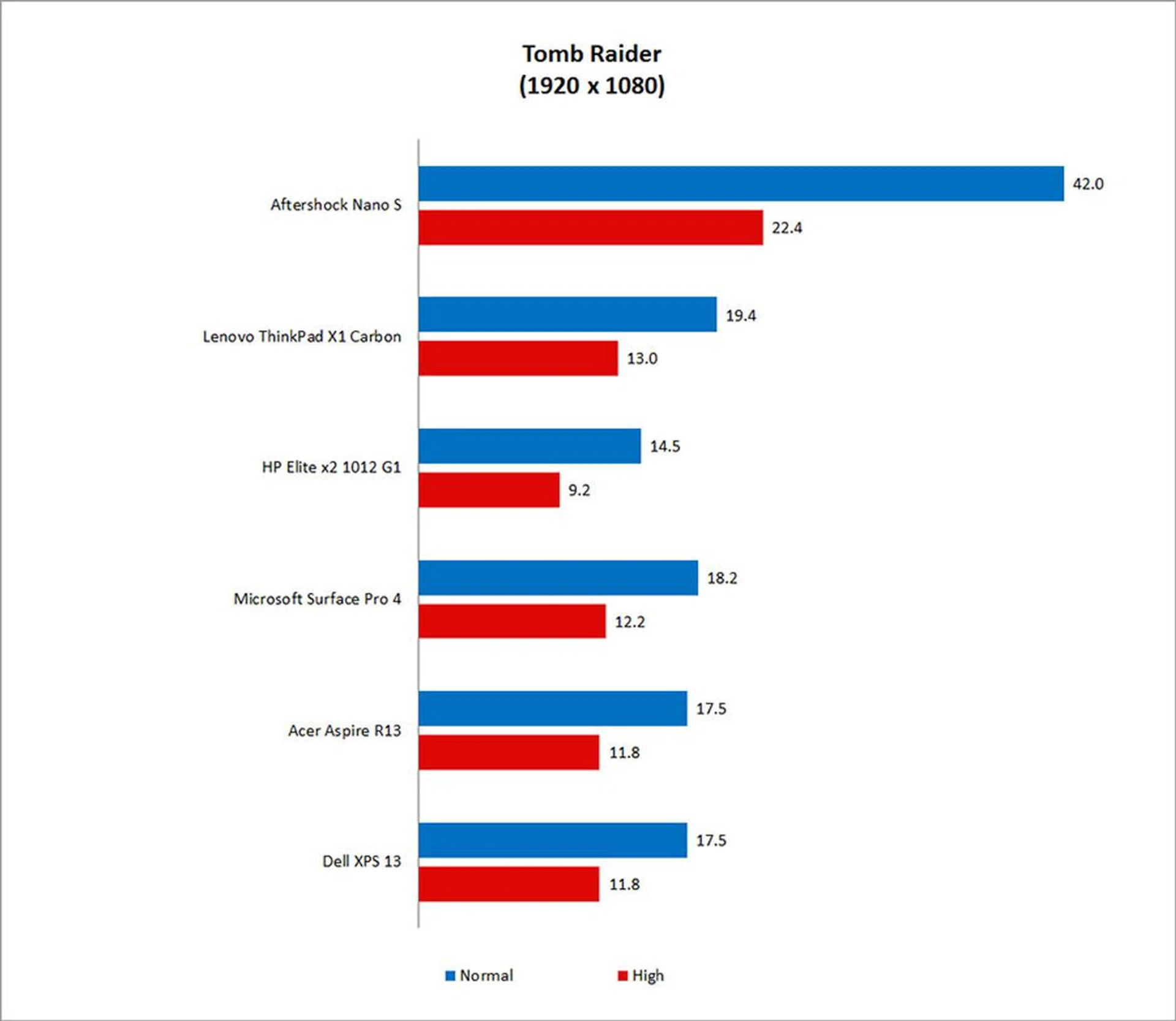 In Tomb Raider, the Nano S managed around 42fps at Normal settings, which actually makes for a reasonably playable experience. The average frame rate plummeted once we ratcheted up the graphics quality to High, and it eeked out only 22.4fps. Still, the former result was more than double – a good 116 per cent actually – what the ThinkPad X1 Carbon was capable of.