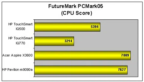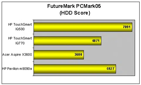 The HDD score here was exceptionally good compared to the rest, possibly due to the 16MB cache of the WD Caviar Blue drive that the new TouchSmart IQ506 PC is using.