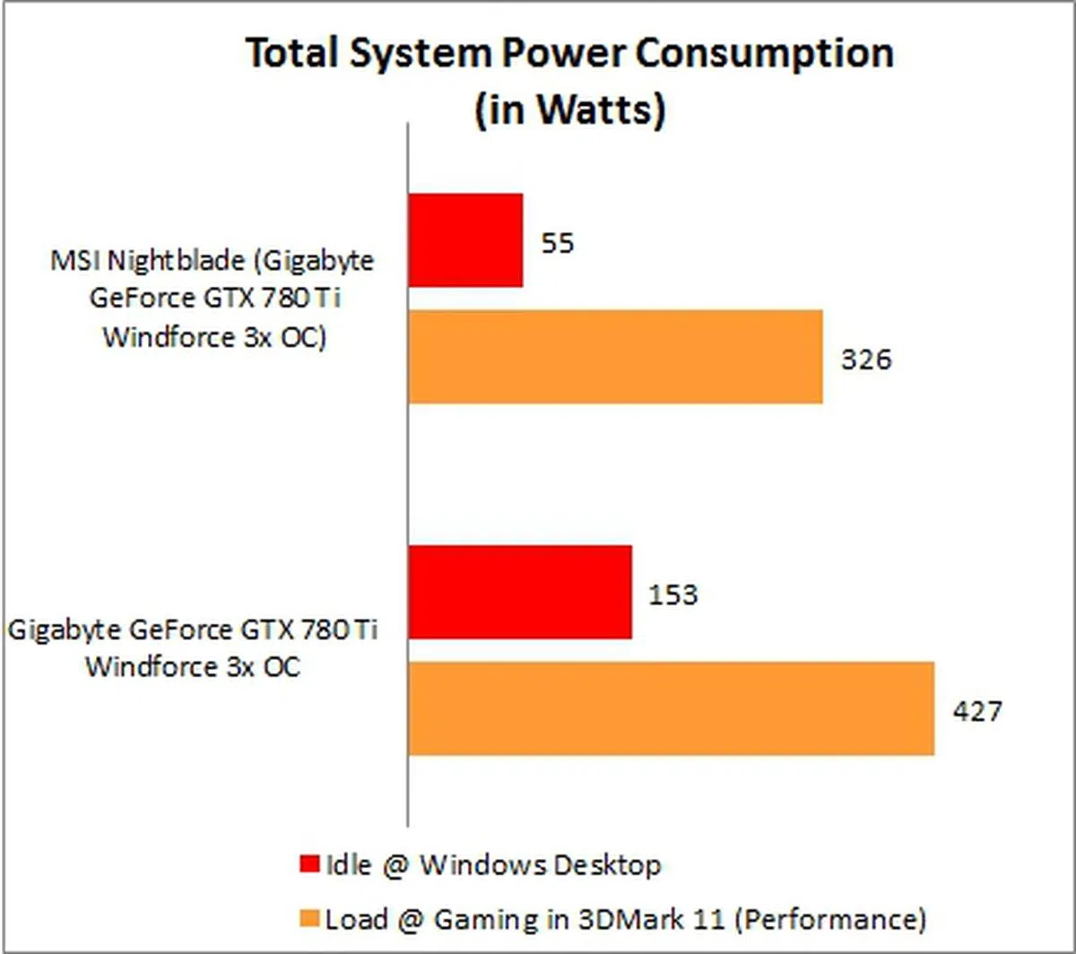 In terms of power consumption, the MSI Nightblade Silverstone 650W managed to keep the Nightblade humming at 55W of power draw during idle; and under load, the Nightblade drew a high of 326W. We can witness the main advantage of a SFF gaming system with its relatively conservative power consumption levels as it has far less components onboard. However, due to its compact nature, the operating temperatures of its components will definitely be higher, like our Gigabyte GeForce GTX 780 Ti graphics card. Hence, additional cooling fans are in order, especially if the Nightblade is to be overclocked for performance gains.