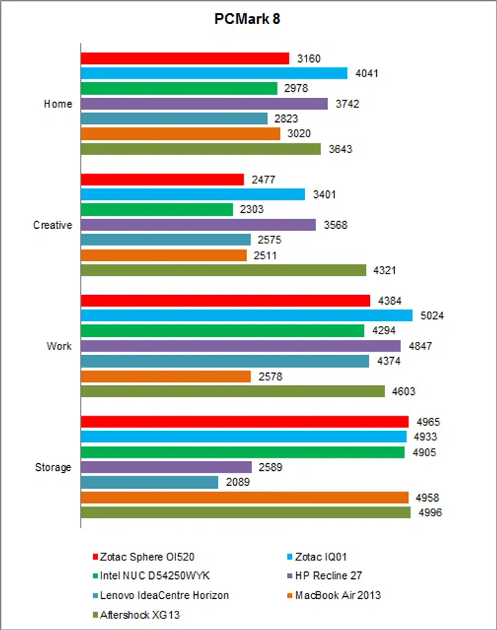 PCMark 8 is the latest benchmarking utility from Futuremark and was designed to measure the performance of Windows 8 systems. We will be testing the system using four different scenarios, Home, Creative, Work and Storage, which simulates different workloads that a user might subject the system to.