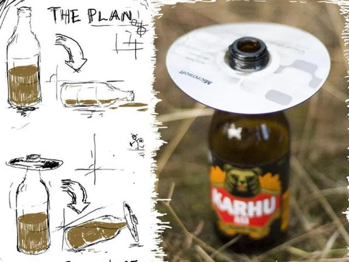Now here's the plan: Get a CD and set it on a beer bottle. And voilà! Even if your flailing arms knock over a bottle, you won't make a mess (or at least not a big one).