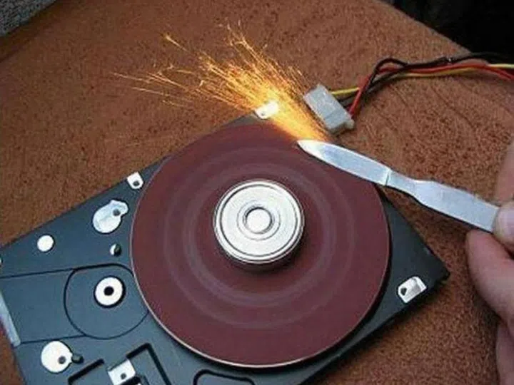 Mechanical drives and friction don't play well together, but if you're all about finding novel uses for ordinary items, a spinning hard drive probably serves as a great sandstone... we think.