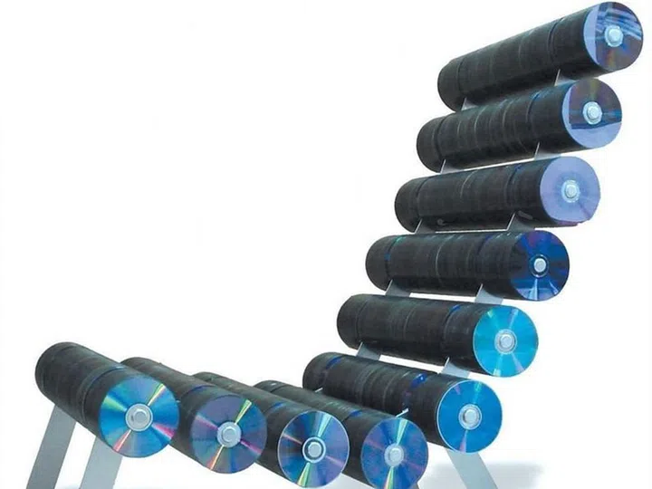 This is quite literally a masterpiece, albeit one by someone with a lot of time on their hands (and a lot of CDs). It might take some time to register, but this is actually a chair comprised of god knows how many CDs.