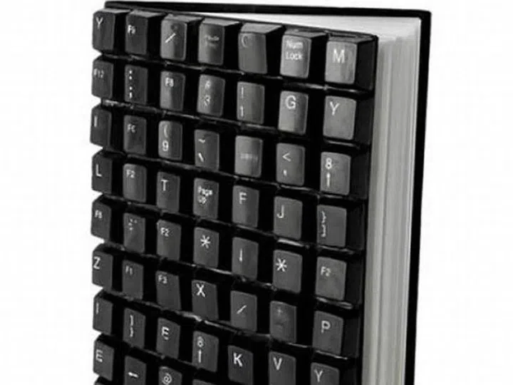 Here's another one by someone with a lot of spare time. This is exactly what it looks like – keycaps glued onto a book cover to make sure it really is one of a kind.