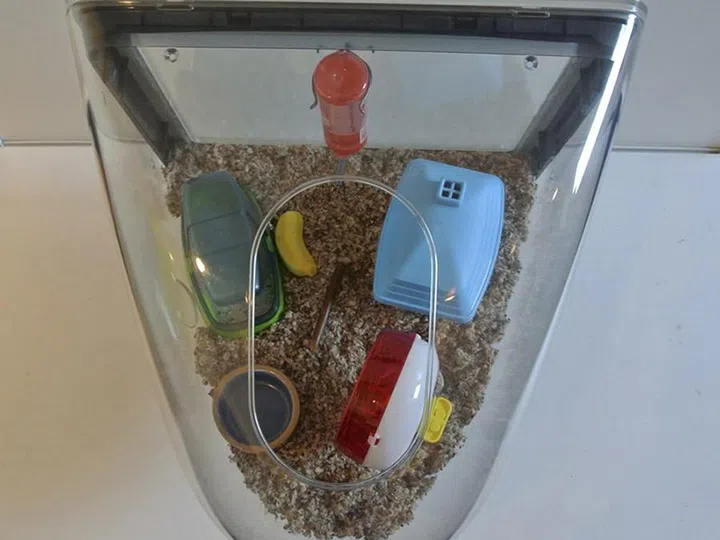 This computer looks like it might once have been an iMac from more than a decade back. But whatever it was in life, it's now a cool home for a very lucky guinea pig.
