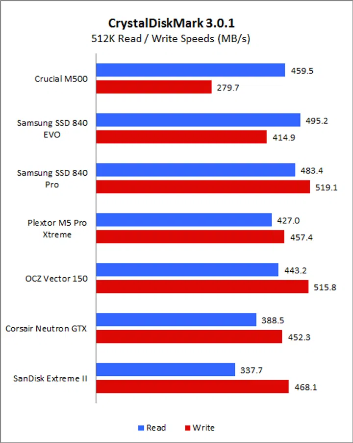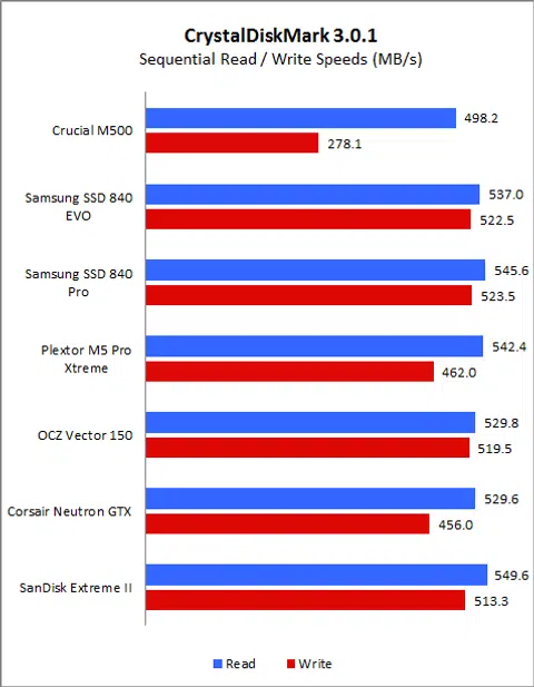 Apart from the Crucial M500 and Samsung SSD 840 EVO, we have also included results of some of the quickest drives in the market today to give an idea of where the two mainstream drives stand in the greater hierarchy of things. We are also interested to see how the new SSD 840 EVO performs against the flagship SSD 840 Pro. Will the newer and faster MEX controller be able to make up for the use of slower TLC NAND?