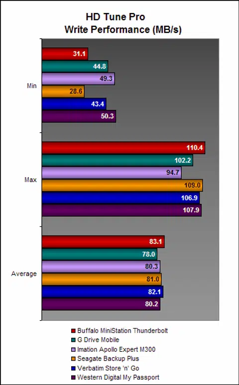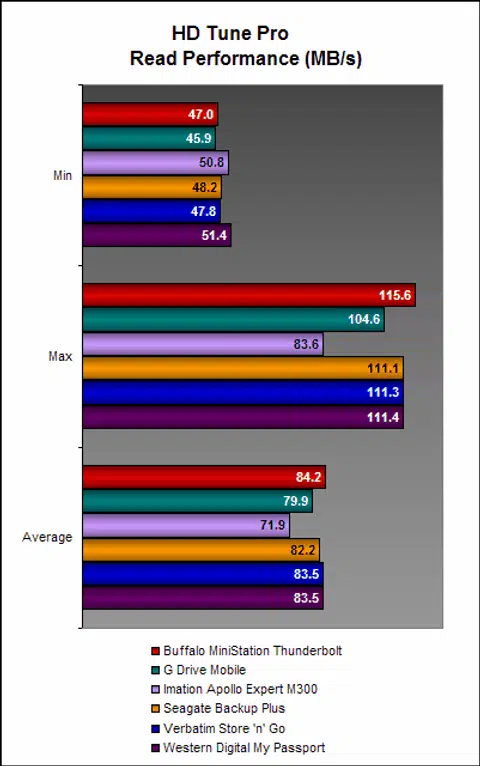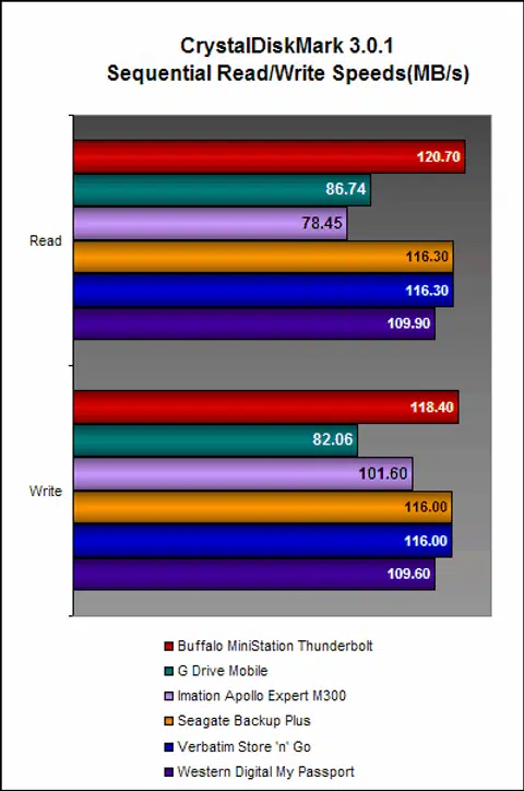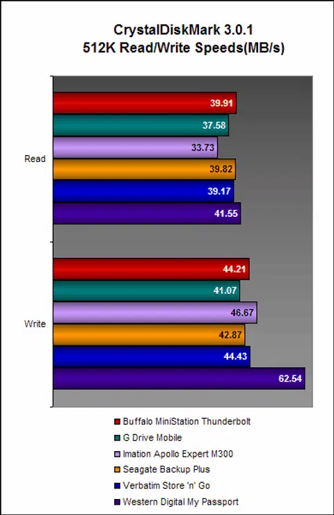 Buffalo MiniStation Thunderbolt | G Drive Mobile USB | Imation Apollo Expert M300 | Seagate Backup Plus | Verbatim Store 'n' Go | Western Digital My Passport | |