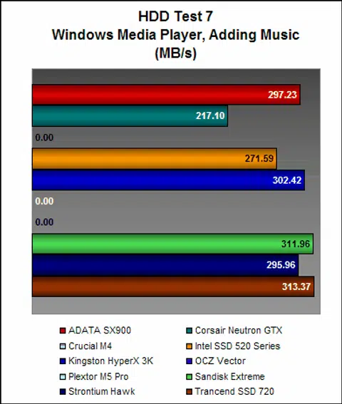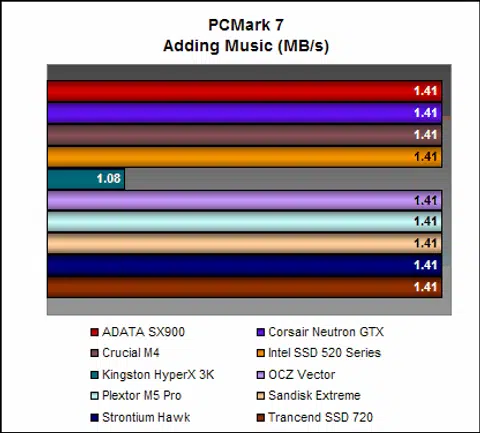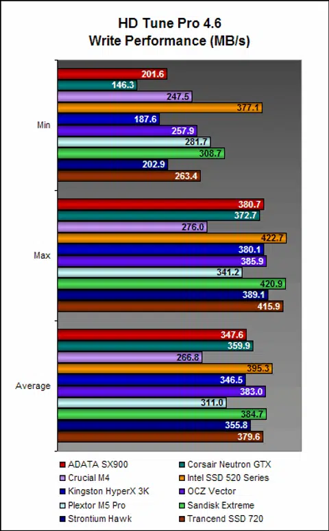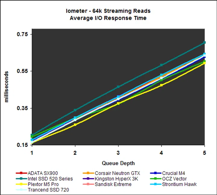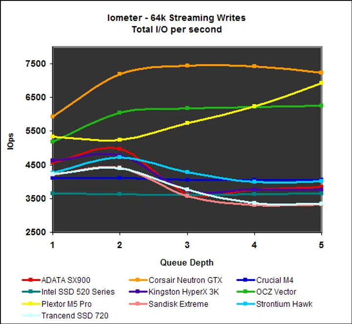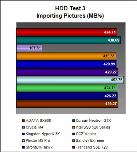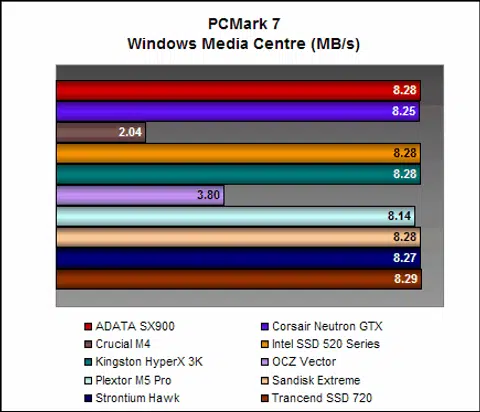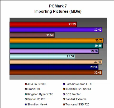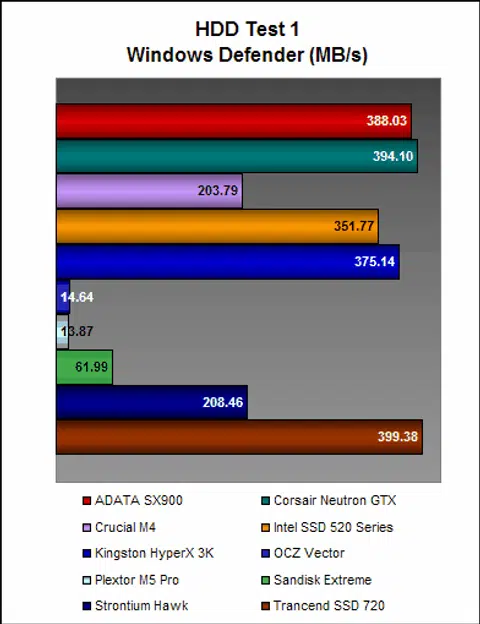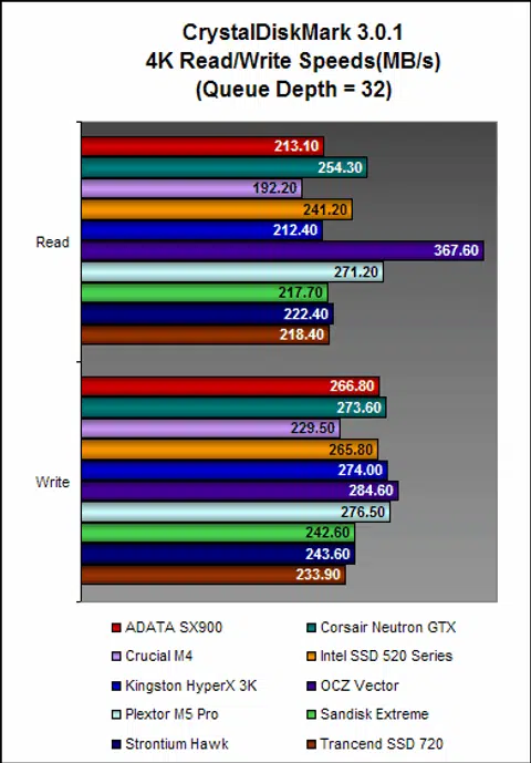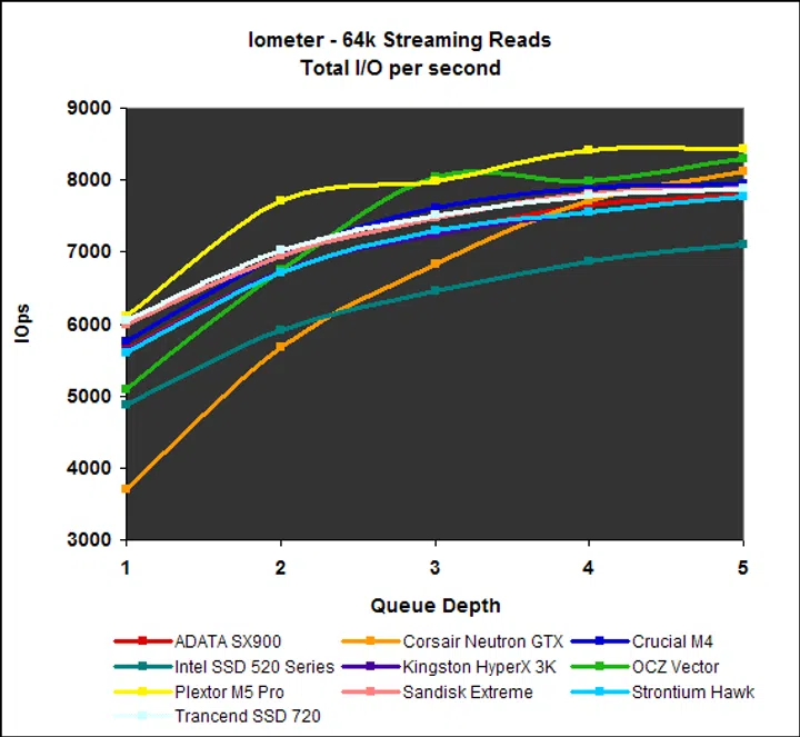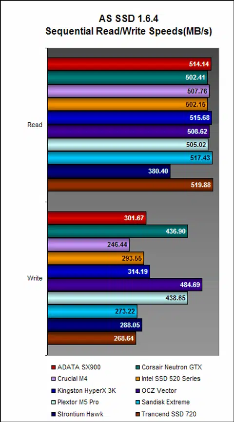ADATA XPGSX900 | Corsair Neutron GTX | Crucial M4 | Intel SSD 520 Series | Kingston HyperX 3K | OCZVector | Plextor M5 Pro | SanDisk Extreme | Strontium Hawk | Transcend SSD720 | |