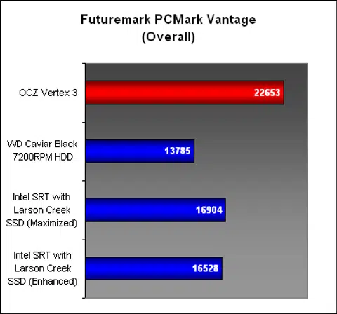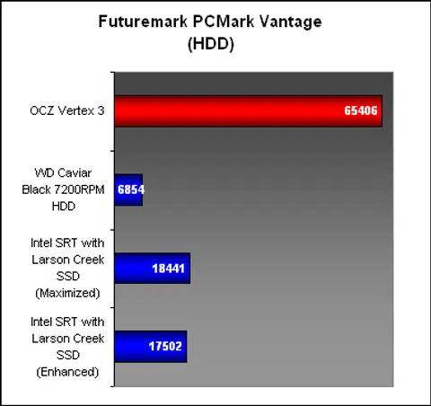 We also tried out a wacky combination in case those who are willing to splurge - using the 20GB Lason Creek drive in conjunction with the OCZ Vertex 3 as the main drive. Unfortunately, Intel SRT only works if your main drive is a HDD. So if you had any ideas of grandeur, our findings should keep this idea in check.